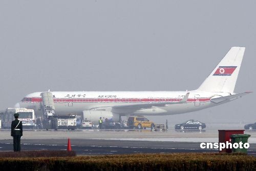 3月17日,朝鮮民主主義人民共和國內(nèi)閣總理金英日乘專機抵達北京首都國際機場。應(yīng)國務(wù)院總理溫家寶邀請,金英日當日上午抵達北京,開始對中國進行為期5天的正式友好訪問。據(jù)悉,此訪是金英日就任總理后首次訪華。中新社發(fā) 盛佳鵬 攝