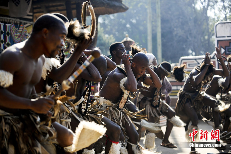 在南非約堡郊外,號稱“南非文化窗口”的萊賽迪(Lesedi)民俗村,聚居著南非最重要的四個(gè)部落。這里有著非洲土著餐飲,還有著原生態(tài)的舞蹈表演,當(dāng)客人來訪,村民就會(huì)盛裝在村口迎接。圖為萊賽迪民俗村。 中新社記者 廖攀攝