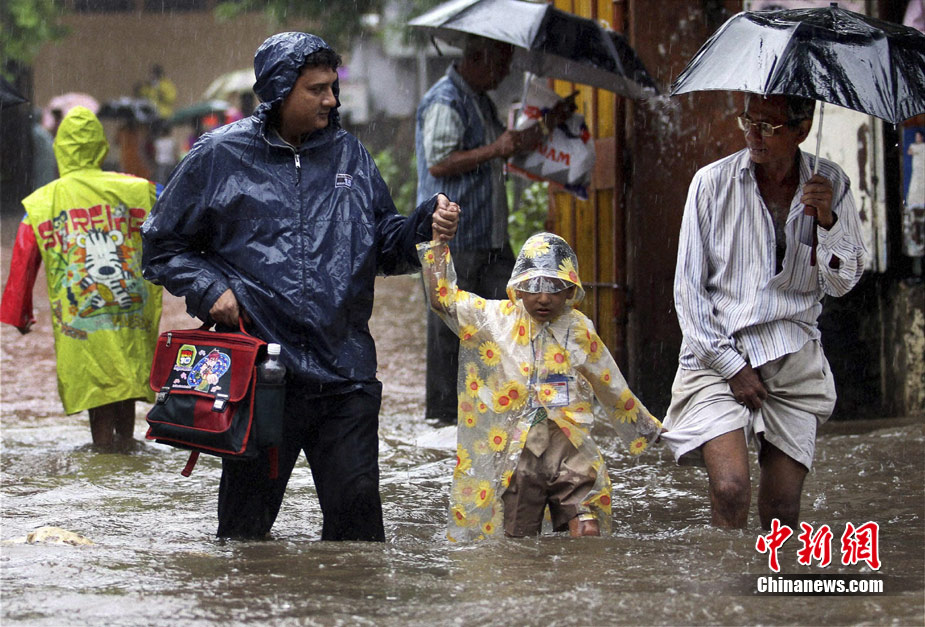 7月3日,印度孟買遭暴雨襲擊。市區(qū)幾乎變成澤國,公路、鐵路等交通受影響嚴(yán)重。