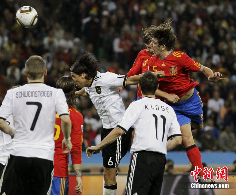北京時間7月8日凌晨2:30,南非世界杯第二場半決賽在德班球場拉開戰(zhàn)幕,由德國隊迎戰(zhàn)西班牙。憑借普約爾在第73分鐘的頭球破門,西班牙隊1-0力克德國,與荷蘭隊會師決賽。