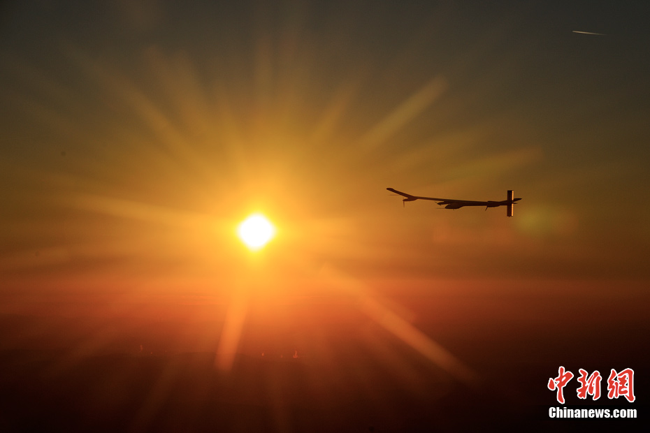 7月8日,太陽(yáng)能飛機(jī)“太陽(yáng)驅(qū)動(dòng)”在空中飛行。世界最大太陽(yáng)能飛機(jī)——瑞士制造的“太陽(yáng)驅(qū)動(dòng)”飛行26小時(shí)后,于當(dāng)?shù)貢r(shí)間8日9時(shí)在瑞士帕耶那機(jī)場(chǎng)降落,成功完成首次晝夜試飛。這是世界上首次進(jìn)行太陽(yáng)能飛機(jī)的夜間試飛。