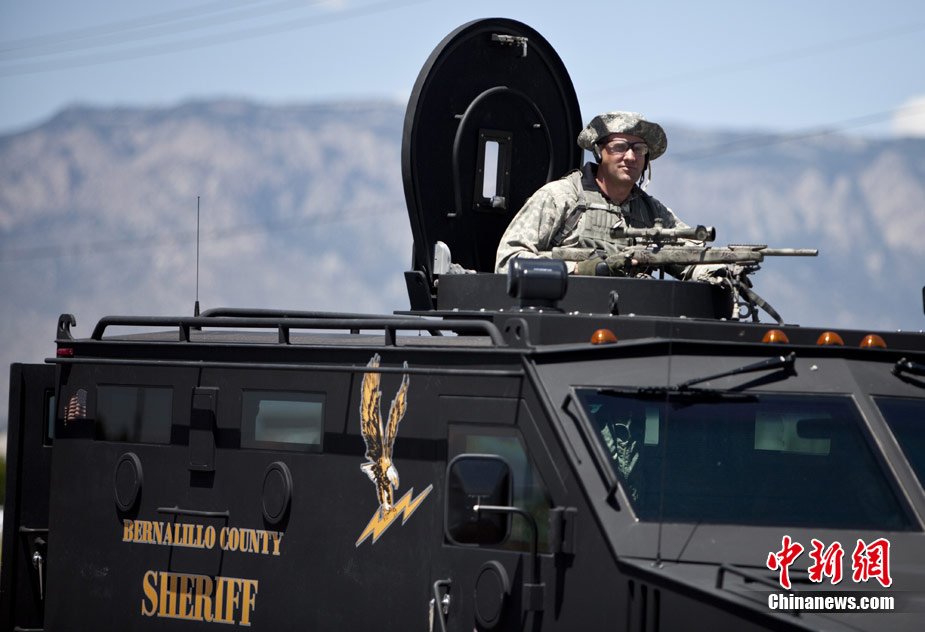 7月12日,美國新墨西哥州阿爾伯克基發(fā)生一起槍擊案,一名槍手在阿爾伯克基東南部的一家光導纖維廠辦公大樓會議室里開槍,打死2人,打傷4人,槍手隨后自殺身亡。警方認為,這可能是一起由家庭糾紛引起、發(fā)展到工作場所的槍擊事件。圖為警察在辦公大樓附近巡邏。