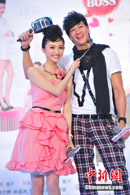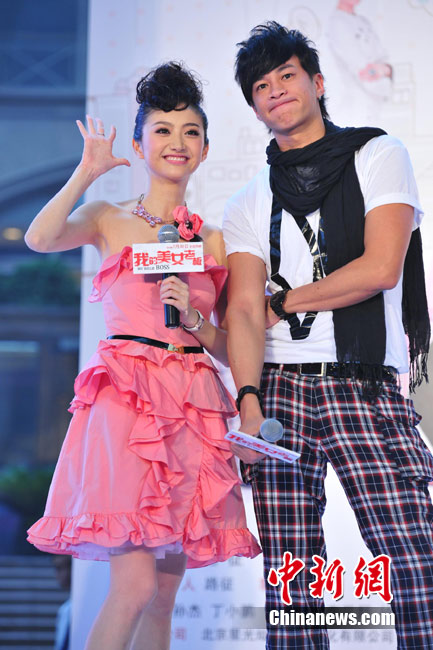 7月15日,時(shí)尚愛情喜劇電影《我的美女老板》在北京舉行了盛大發(fā)布會(huì),主演景甜、何潤(rùn)東、包小柏、吳辰君閃亮出席。景甜與何潤(rùn)東在發(fā)布會(huì)上表現(xiàn)活潑,二人不僅別出心裁地騎摩托登場(chǎng)大秀甜蜜,還現(xiàn)場(chǎng)上演吻戲、搞笑十連拍,甚至帶上拳擊手套“拳腳相加”。中新社記者 李學(xué)仕 攝