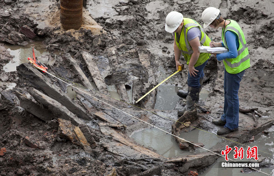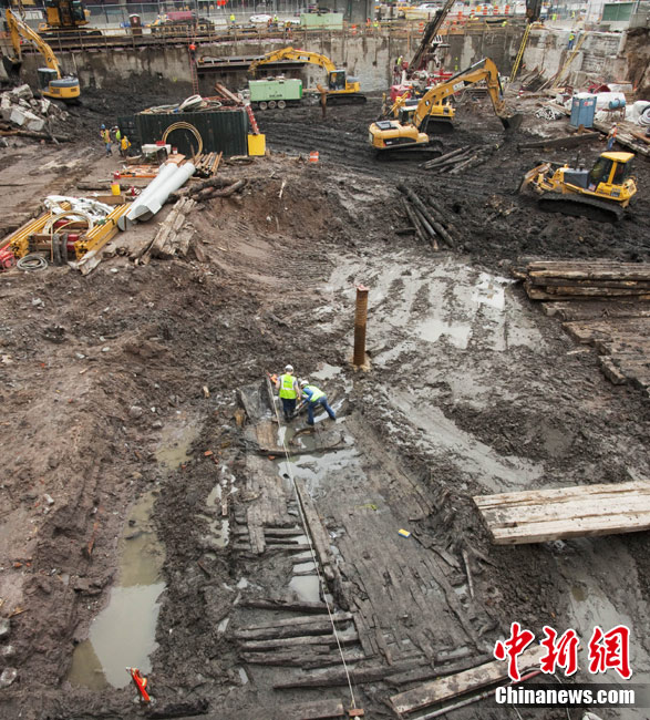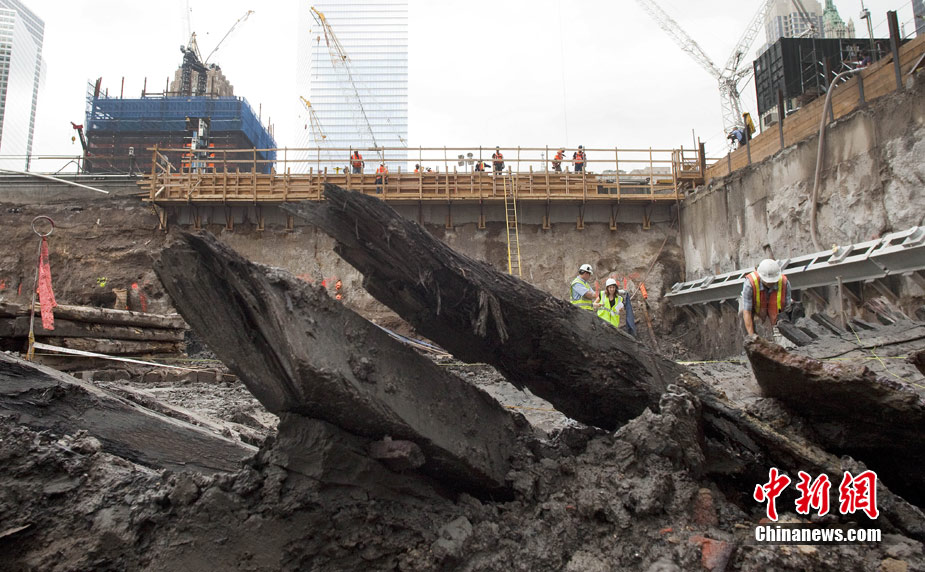 近日,美國紐約世貿(mào)中心遺址發(fā)現(xiàn)了一艘據(jù)信是18世紀(jì)的古船殘骸。報道稱,正在當(dāng)?shù)匦藿ㄐ率蕾Q(mào)大樓的建筑工人意外發(fā)現(xiàn)了這艘古船?脊艑W(xué)家表示,這艘長約32英尺的古船可能是當(dāng)年用來運料填充哈德遜河。
