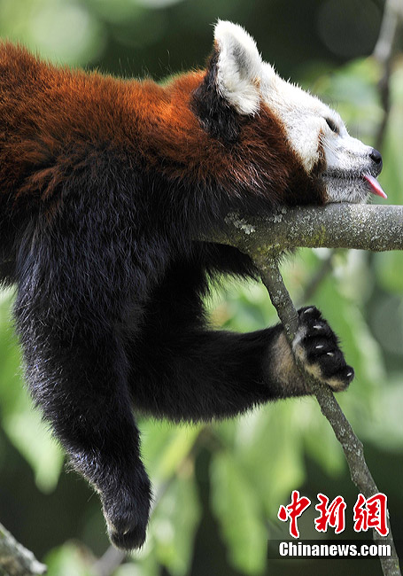 7月14日,德國(guó)克龍貝格動(dòng)物園內(nèi)的小熊貓忍受著酷熱。