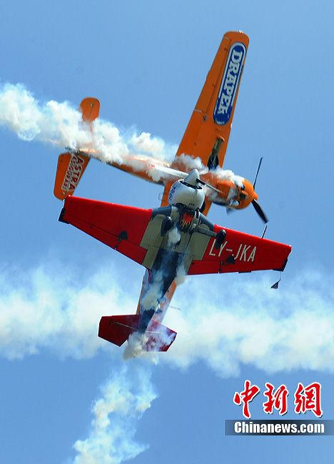 當(dāng)?shù)貢r間7月17日,來自世界各地60多架老式飛機參加了在羅馬尼亞首都布加勒斯特北郊亨利·科安達國際機場舉行的2010飛行表演。