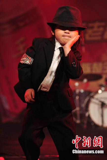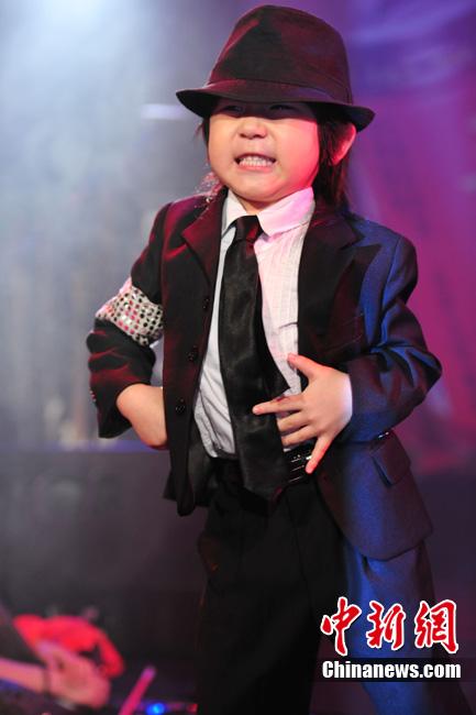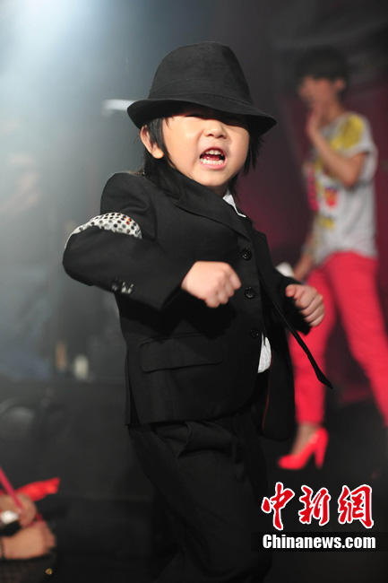 7月18日晚,陳楚生北京歌友會(huì)勁爆上演。4歲的街舞神童“小寶”王一鳴現(xiàn)場(chǎng)為陳楚生助陣!靶殹蹦昙o(jì)雖小,卻是位舞蹈天才,曾得到MJ舞蹈老師的肯定。他模仿MJ的經(jīng)典舞步熱翻全場(chǎng),贏得現(xiàn)場(chǎng)粉絲陣陣尖叫,風(fēng)頭大有蓋過陳楚生之意!靶殹斌@人的舞蹈技藝也讓陳楚生大呼佩服。圖為小寶模仿起MJ像模像樣,舞技超群。中新社記者 李學(xué)仕 攝