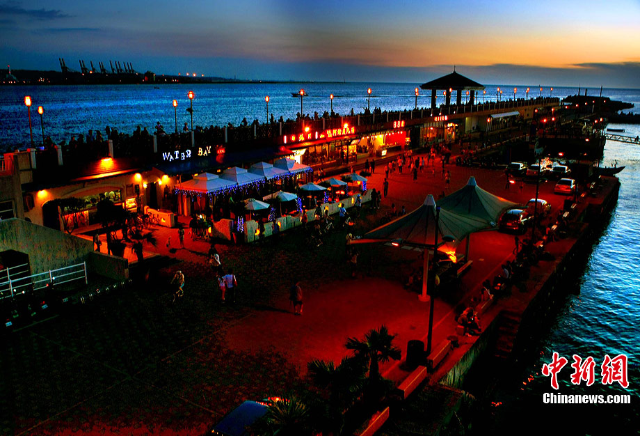 進(jìn)入7月中下旬的臺(tái)灣淡水漁人碼頭,游人如織,黃昏時(shí)下,晚霞照碼頭,漁船燈火明,景色迷人。據(jù)悉,淡水漁人碼頭,之前為淡水第二漁港,情人橋完工后,完善成為觀光休閑碼頭。中新社記者 宋吉河 攝