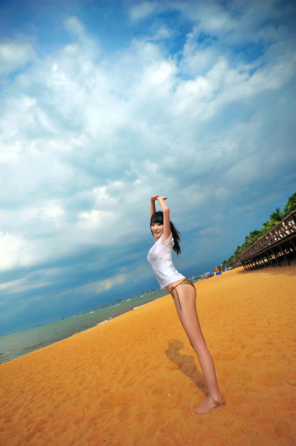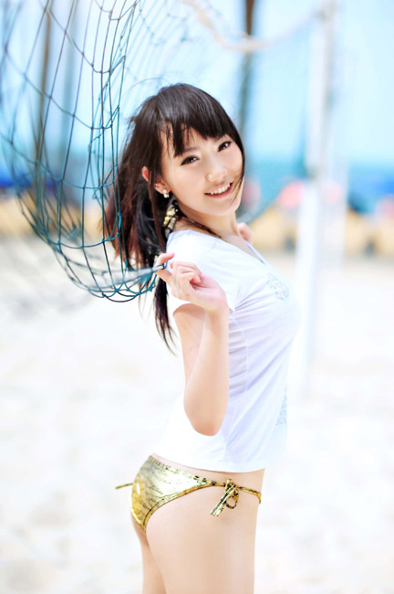 近日,清純美女排球?qū)氊惷贤仙泶┗鹄北然嵩谏碁┥贤嫫鹆伺徘颍患咨r衣加粉嫩金色的比基尼將孟瞳迪的傲人身材盡情展示。