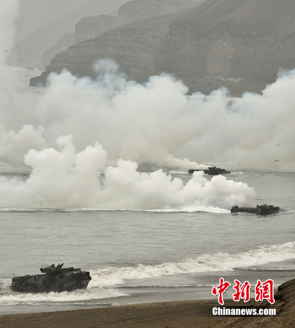 7月19日,美國與秘魯、阿根廷、巴西、哥倫比亞、墨西哥和烏拉圭等10國海軍一起在秘魯首都利馬北部的安孔港展開一場代號為“SE/POA 10”的聯(lián)合兩棲登陸演習(xí)。