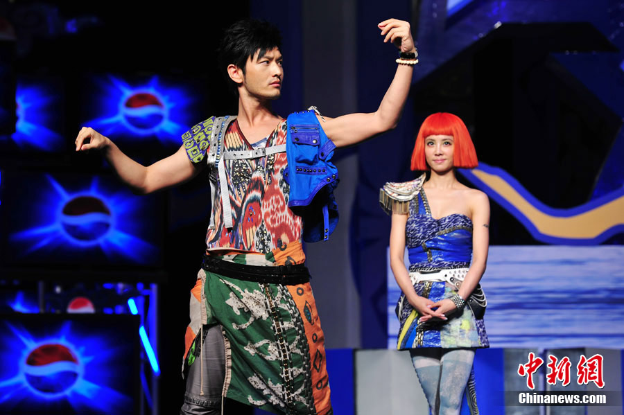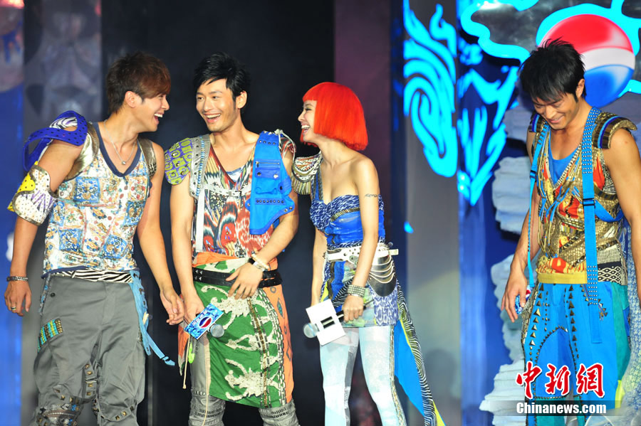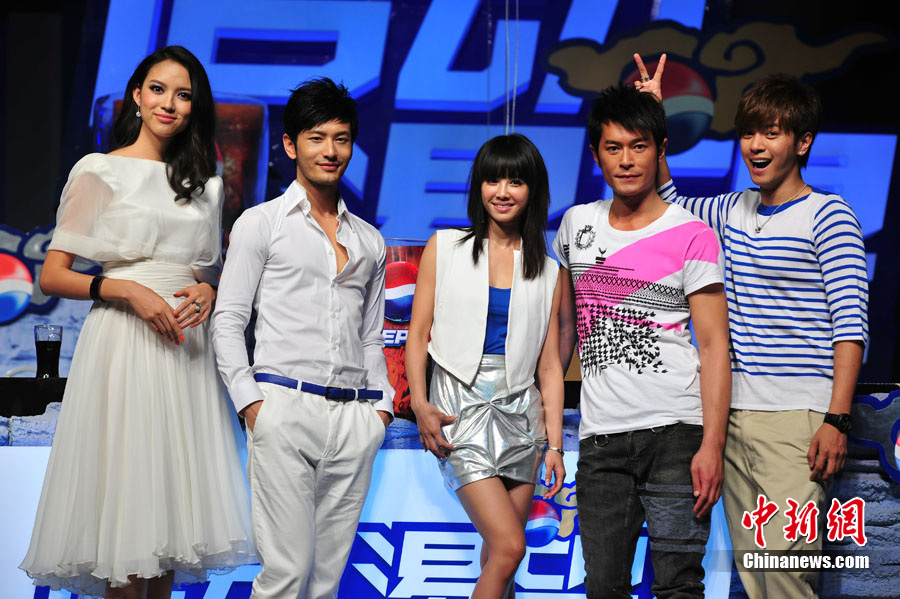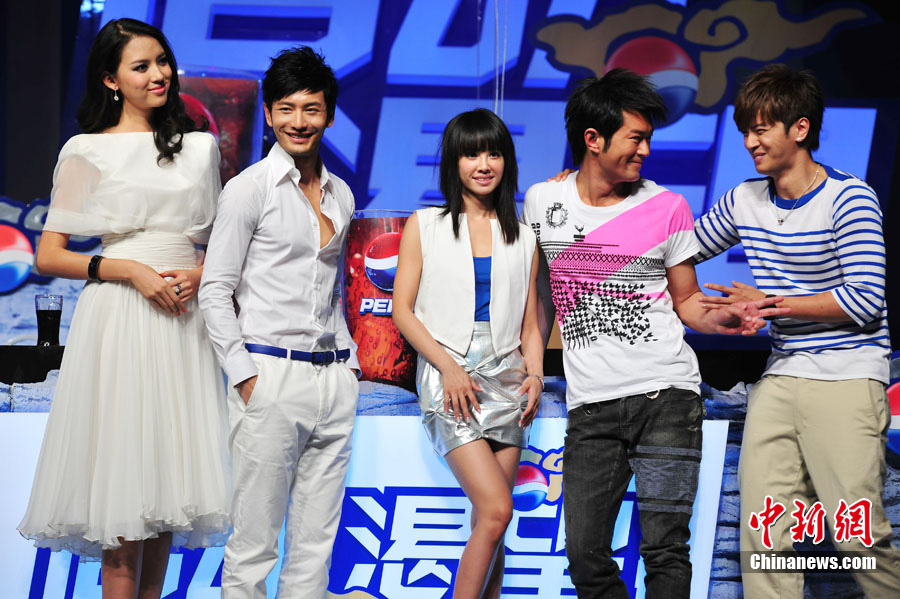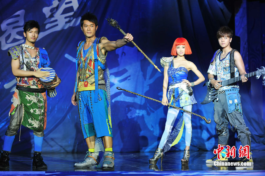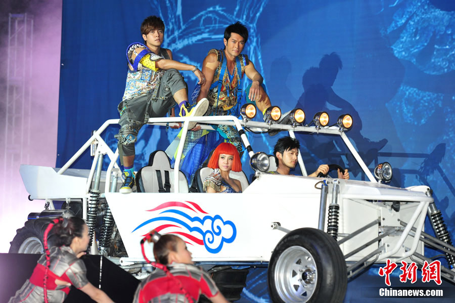7月21日,國(guó)際某飲料巨頭在北京召開新聞發(fā)布會(huì),最新主題廣告震撼首播。古天樂、羅志祥、黃曉明、蔡依林身著華麗戰(zhàn)袍駕駛戰(zhàn)車亮相,他們以師兄弟的身份打造全新“西游記”,“世界小姐選美大賽冠軍”張梓琳更是以蜘蛛精身份出演。中新社記者 富田 李學(xué)仕 攝