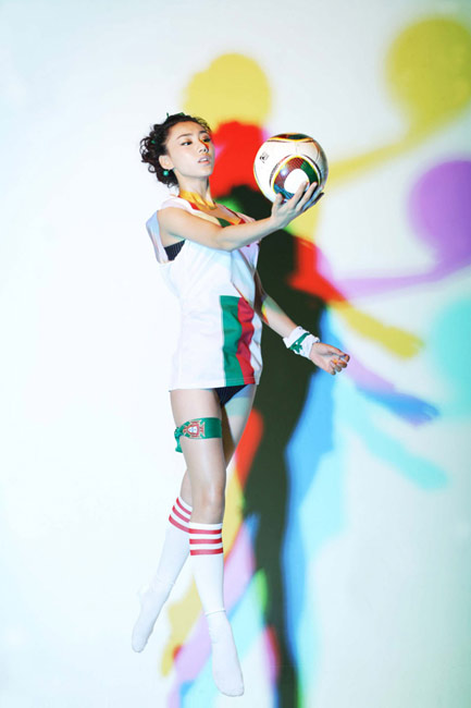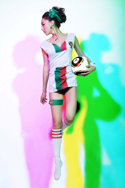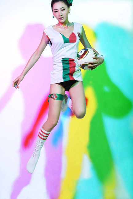 出生于1989年的金美辛是一位美麗的足球?qū)氊悺=,金美辛拍攝一套性感照片懷念世界杯葡萄牙隊(duì)和C羅。