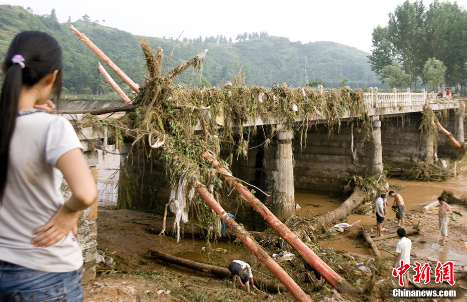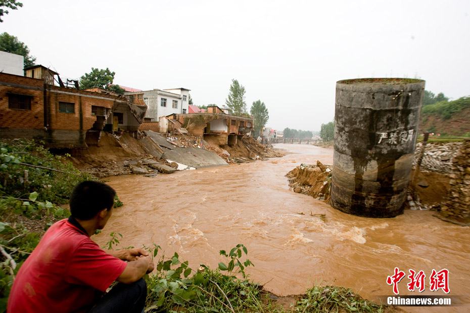 7月23日8時(shí)至25日8時(shí),地處中原腹地的河南省遭強(qiáng)降雨襲擊,致使部分地區(qū)房屋倒塌、良田被毀、通訊中斷。河南省防汛抗旱指揮部25日公布的消息稱,受降雨影響,該省丹江荊紫關(guān)水文站24日15時(shí)洪峰水位217.59米,洪峰流量10000立方米每秒,為新中國成立以來最大;老灌河西峽水文站24日17時(shí)30分洪峰水位84.31米,洪峰流量7380立方米每秒,亦為1949年以來最大。伊河陸渾水庫25日8時(shí)水庫蓄水位320.77米,超歷史最高水位1.9米。中新社發(fā) 王中舉 攝