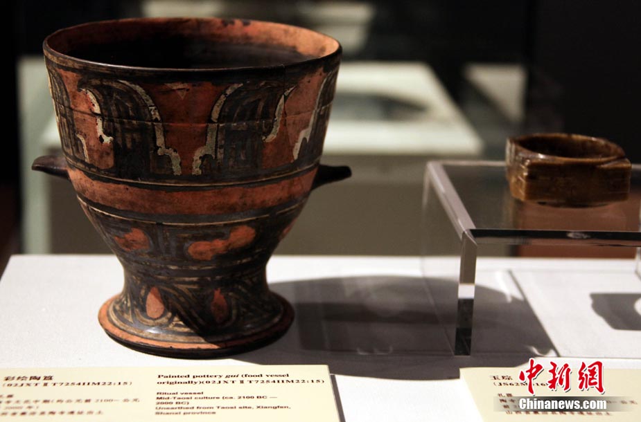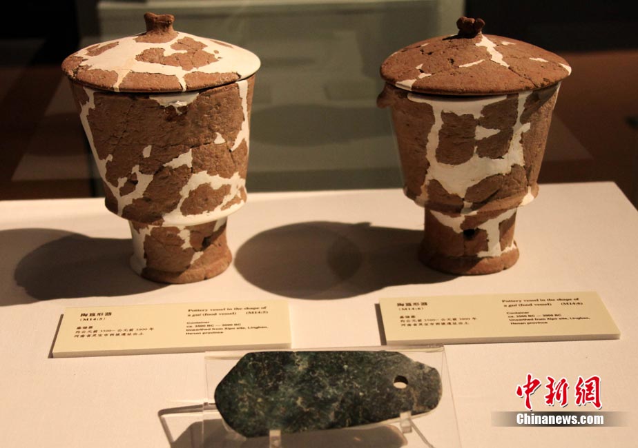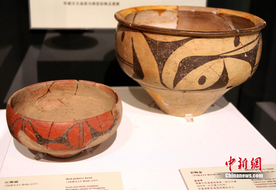 7月29日,中國社會科學(xué)院考古研究所與首都博物館共同主辦的“考古中華”展開展,展出的400多件珍貴出土文物中有7成以上為首次公開亮相。今年是中國社科院考古所成立60周年,作為該所甲子誕辰系列慶典活動之一,“考古中華”將展出60年來新中國前后四代數(shù)百位考古學(xué)家所獲各種重要考古成果,堪稱中國迄今舉辦規(guī)模最大的考古學(xué)專題展覽。圖為考古發(fā)掘出土的精美陶器。中新社記者 孫自法 攝