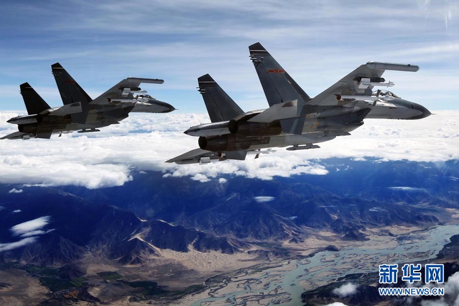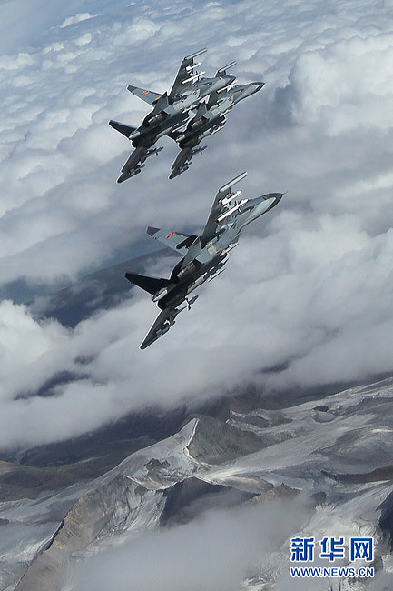 7月6日,戰(zhàn)機(jī)在青藏高原上空飛行。今年3月以來(lái),成都軍區(qū)空軍某部在西藏進(jìn)行第三代戰(zhàn)機(jī)攜實(shí)彈高原訓(xùn)練,組織戰(zhàn)機(jī)進(jìn)行高原條件下的復(fù)雜氣象飛行、戰(zhàn)術(shù)戰(zhàn)法探索飛行以及極限性能檢測(cè)飛行等訓(xùn)練。劉應(yīng)華 攝