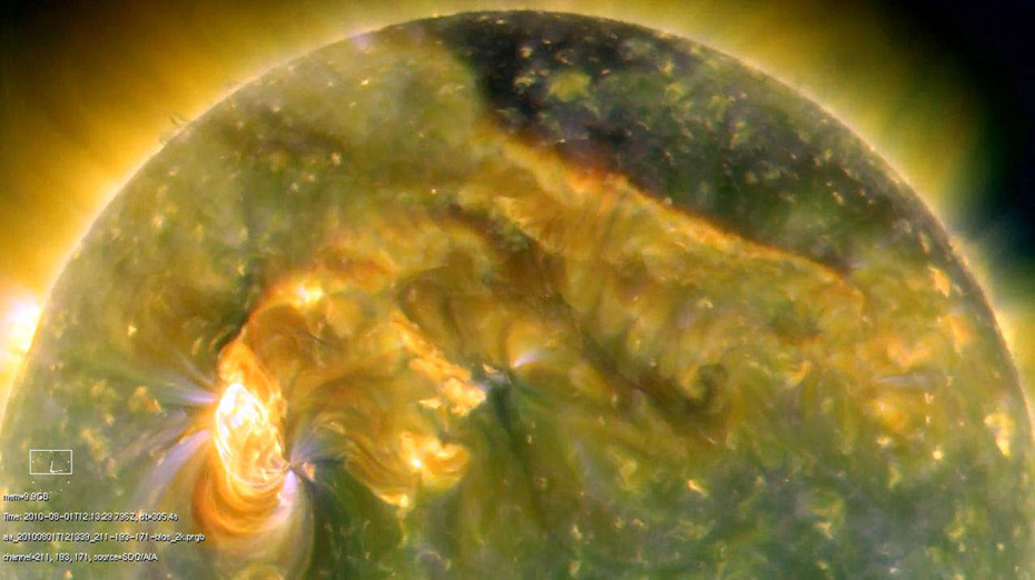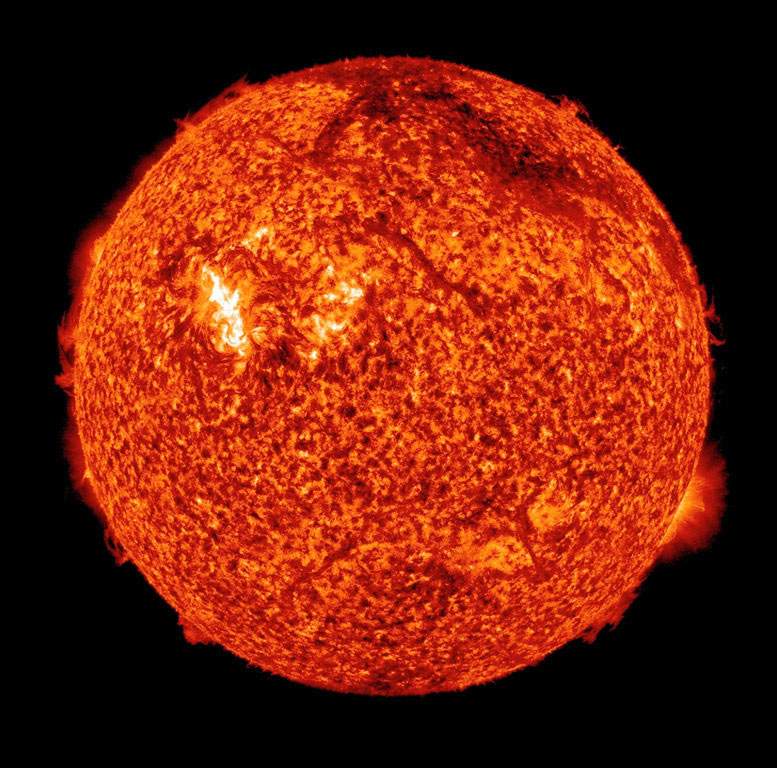 據(jù)英國媒體2日報道,各國天文臺近日觀測到太陽表面發(fā)生劇烈的太陽風(fēng)暴,科學(xué)家預(yù)測,攜帶大量帶電粒子的太陽風(fēng)預(yù)計(jì)于4日抵達(dá)地球,在兩極產(chǎn)生強(qiáng)烈的極光現(xiàn)象。圖為8月3日,NASA公布了太陽動力學(xué)觀測衛(wèi)星(SDO)1日通過極紫外線相機(jī)拍攝到的太陽北半球耀斑爆發(fā),耀斑下的太陽黑子足有地球大小。(NASA圖)