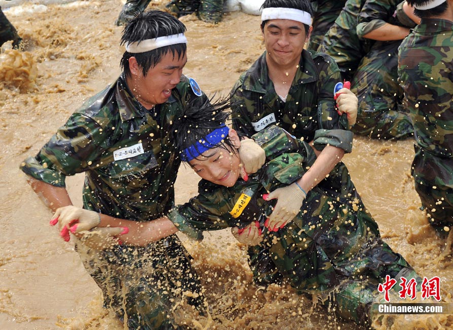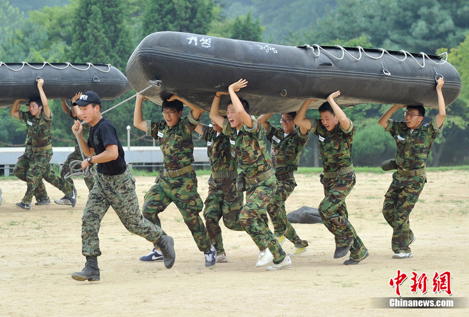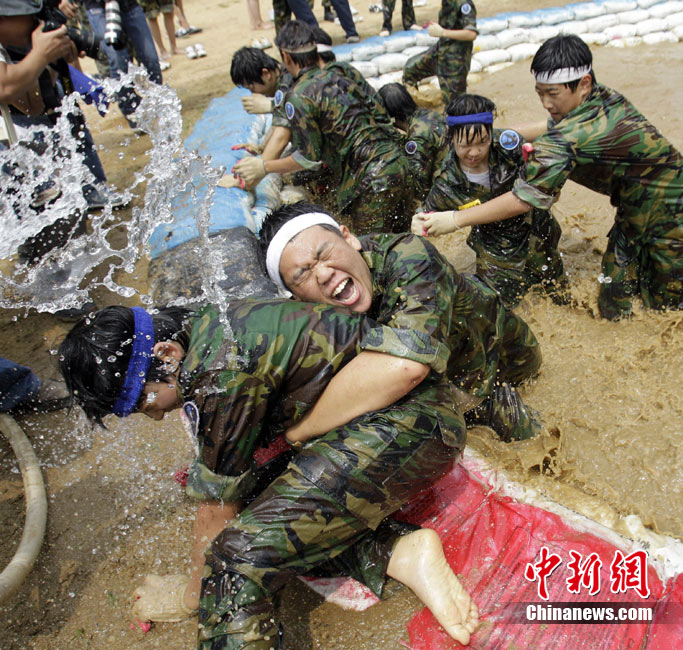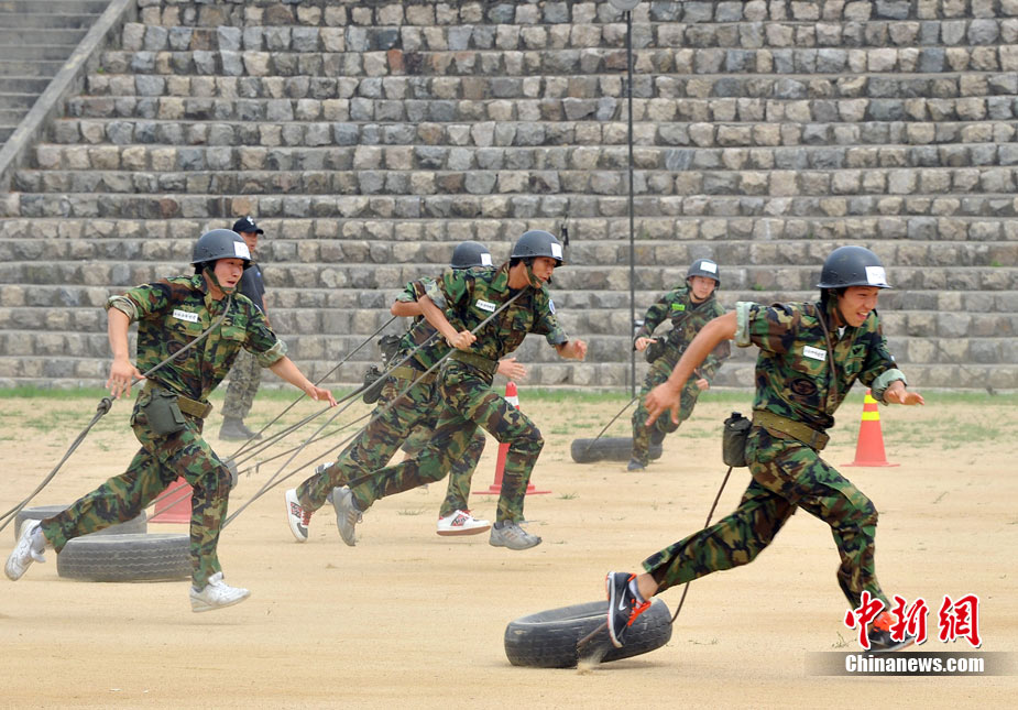 韓國(guó)學(xué)生軍事基地訓(xùn)練 磨練意志體魄
