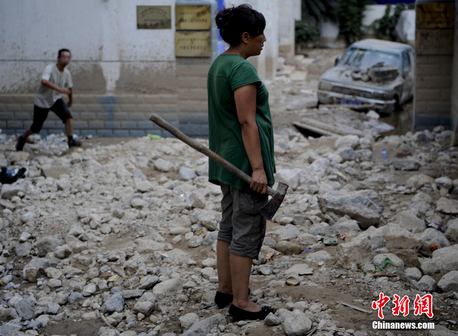 舟曲縣城內(nèi)被泥石流沖毀的建筑。中新網(wǎng)記者 金碩 攝