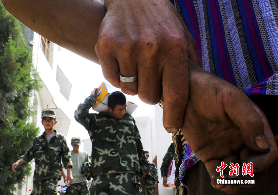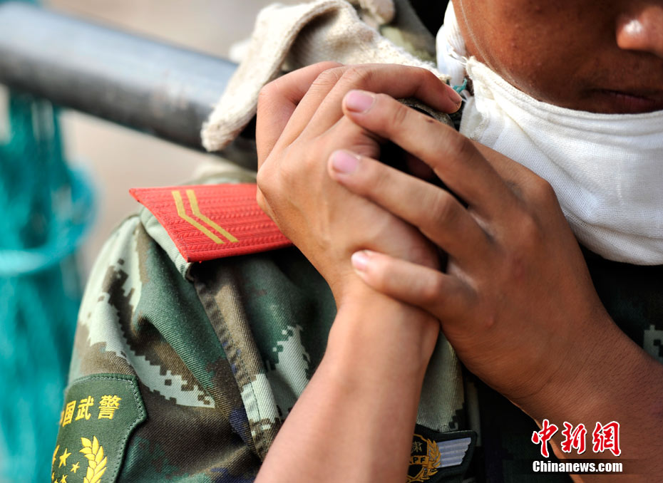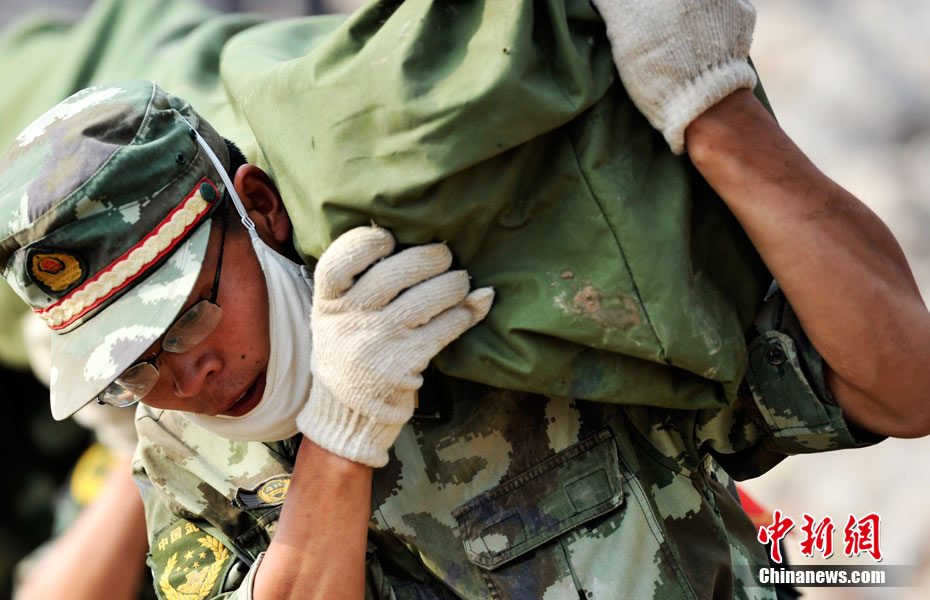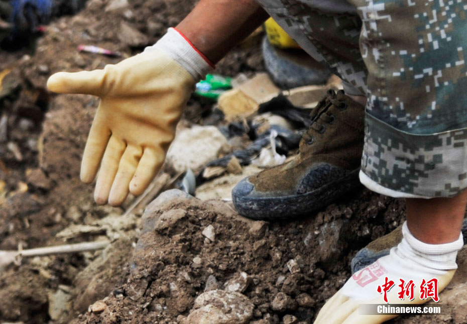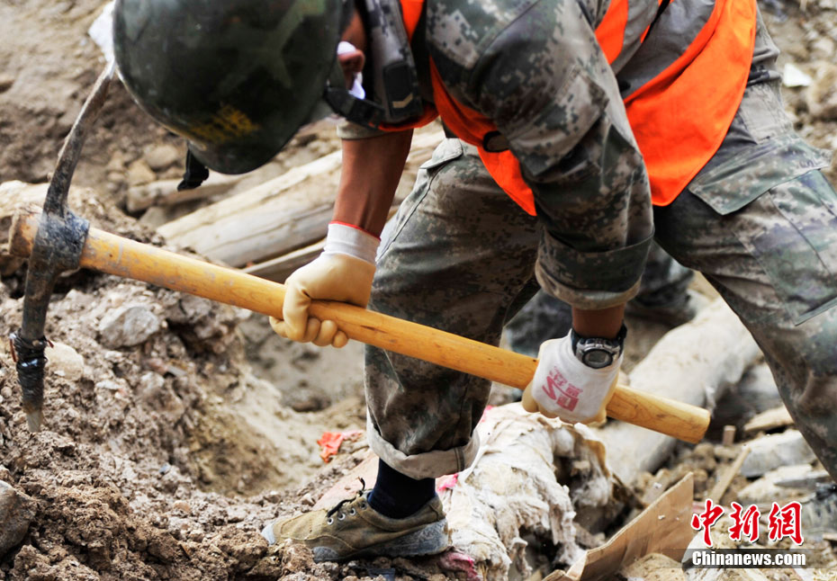 8月10日 舟曲救援進(jìn)入到第三天,解放軍武警官兵們?cè)趶U墟中尋找著一切希望。中新網(wǎng)記者 金碩 攝
