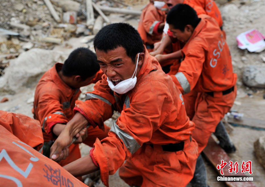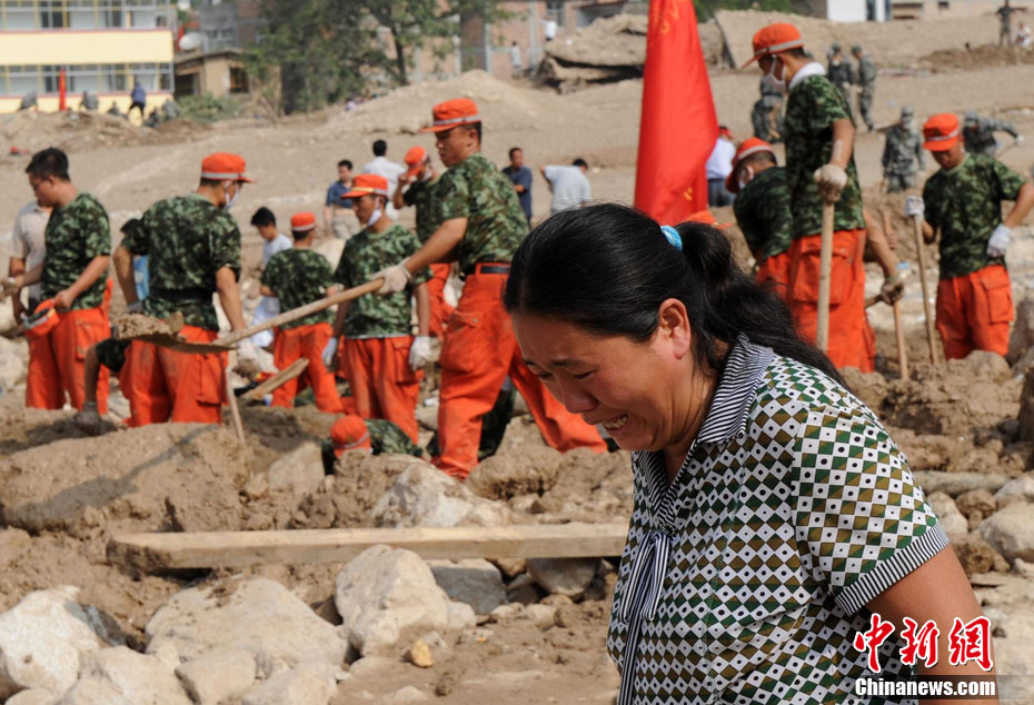 2010年8月11日,甘肅舟曲縣發(fā)生特大泥石流災害后的第四天,目前救援工作仍在繼續(xù)。截至10日17時,泥石流災害死亡人數(shù)已達702人,失蹤人員1042人,42人重傷。中新網(wǎng)記者 金碩 攝