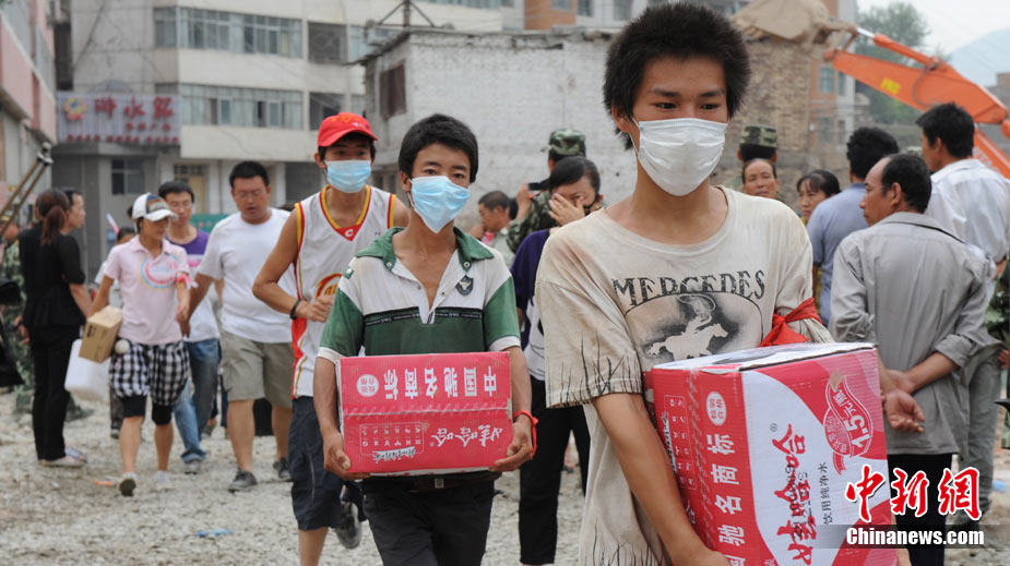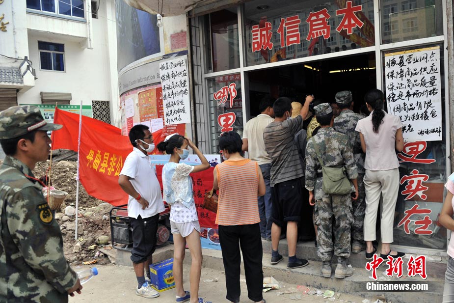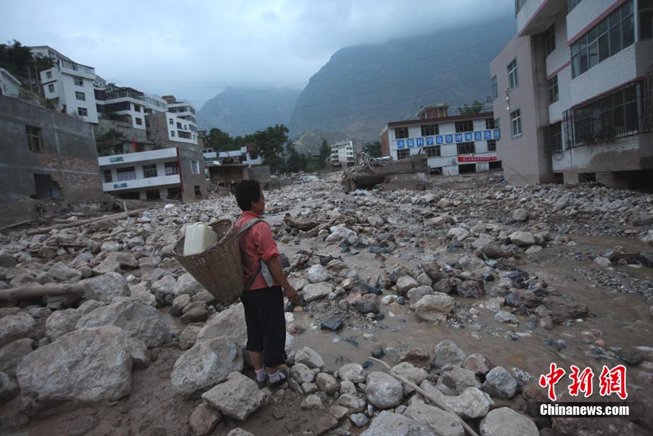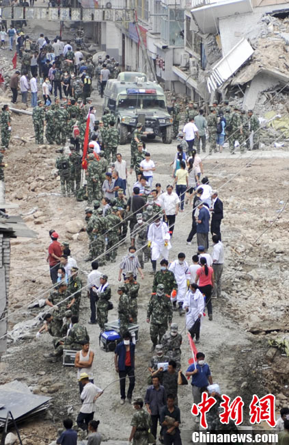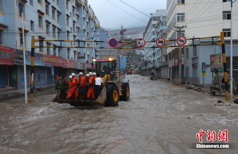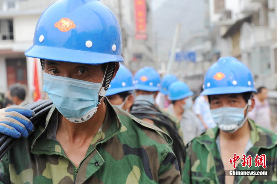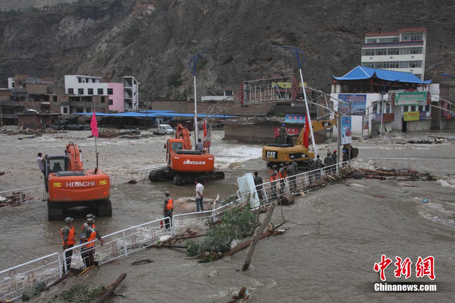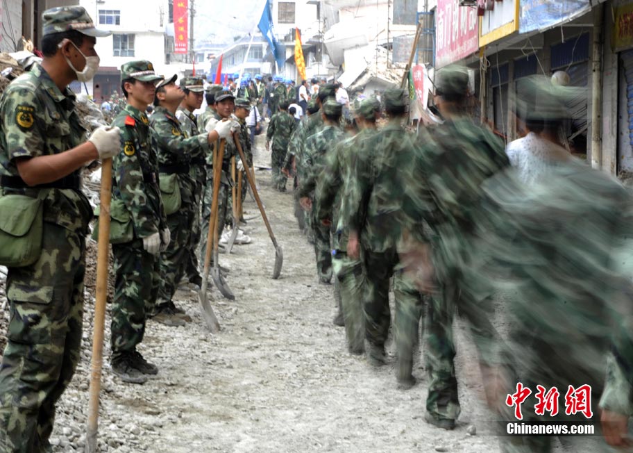 8月11日上午9時40分,蘭州軍區(qū)某集團(tuán)軍“開山斧工兵團(tuán)”對舟曲堰塞湖堰塞體成功實(shí)施第12次爆破。爆破后河道明顯出現(xiàn)斜坡,江水下泄速度明顯加快。圖為堰塞體12次爆破現(xiàn)場。中新社發(fā) 劉忠俊 攝