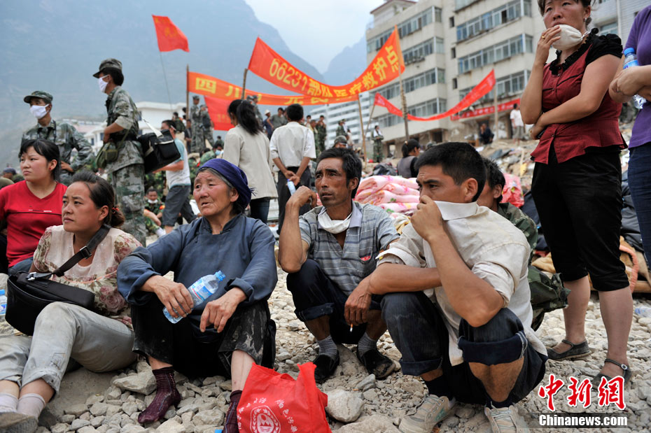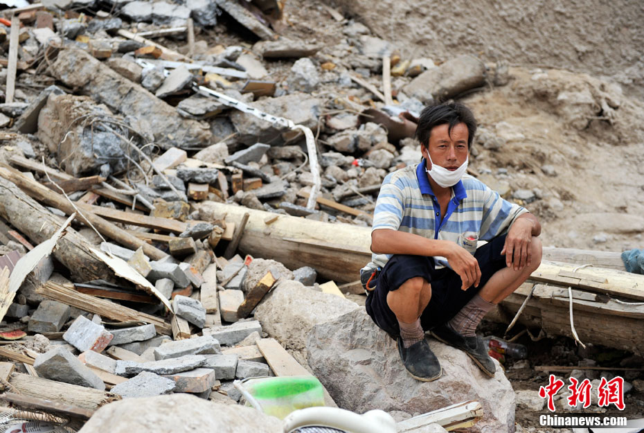 2010年8月11日,甘肅舟曲縣發(fā)生特大泥石流災(zāi)害后的第四天,救援工作仍在繼續(xù)。截至10日17時(shí),泥石流災(zāi)害死亡人數(shù)已達(dá)702人,失蹤人員1042人,42人重傷。隨著救援工作的緊張進(jìn)行,許多受災(zāi)民眾在自己的家園附近苦苦守望,希望親人奇跡生還,希望給逝者最后的尊嚴(yán)。中新網(wǎng)記者 金碩 攝