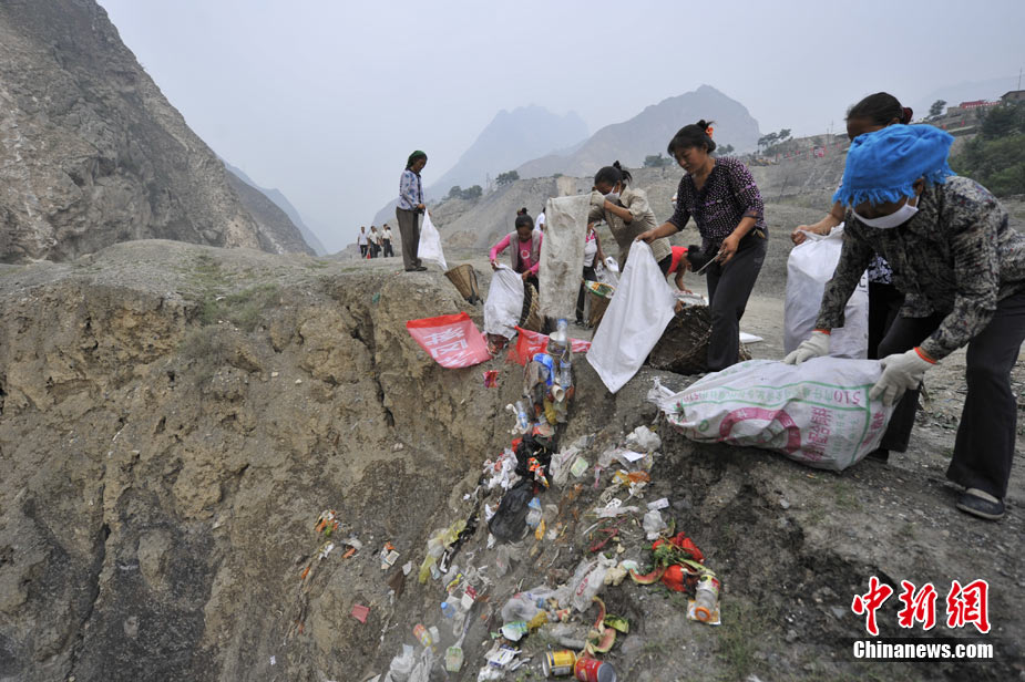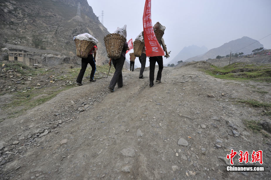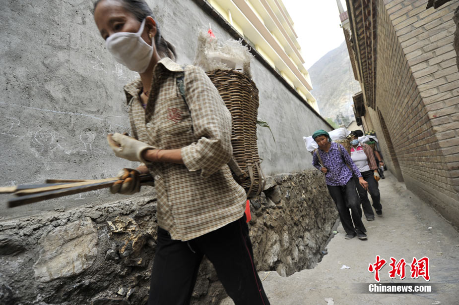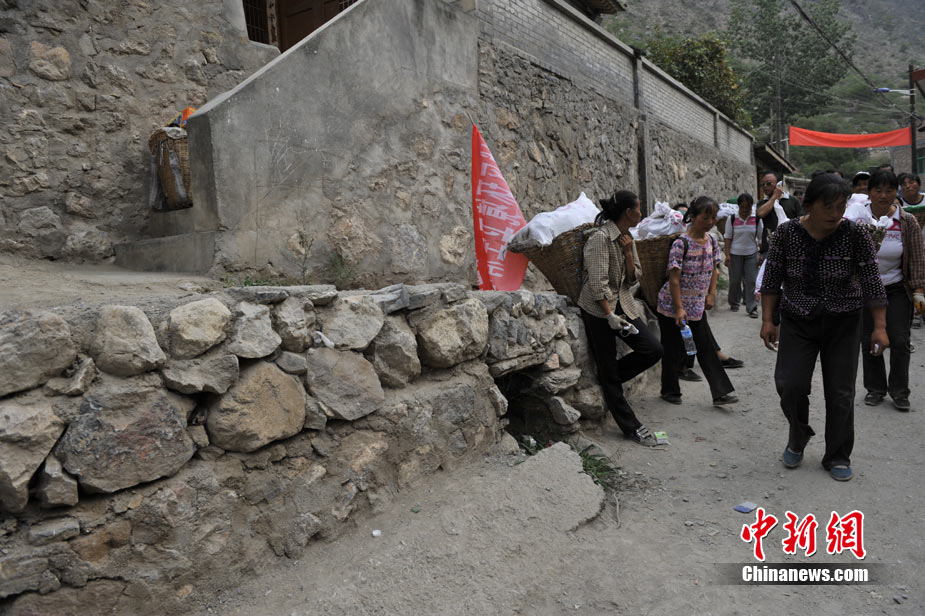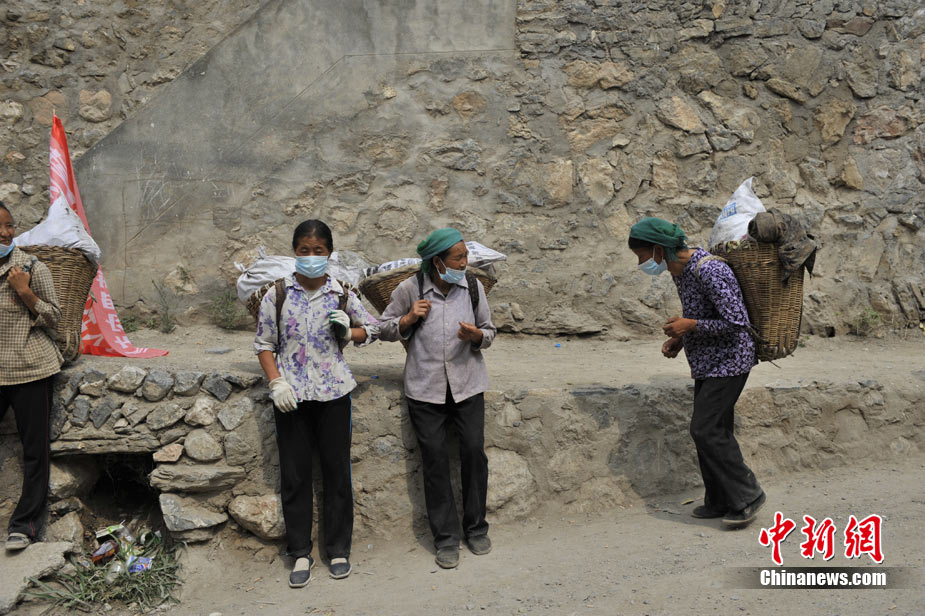 從早上8點到12點,一上午這支“突擊隊”來回四趟,天氣炎熱,雖然對地形非常熟悉,她們休息的次數(shù)越來越多,步子也慢了起來。休息間歇,記者問起,這次清運垃圾政府會不會給些工資,大家都笑而不語!敖o不給錢無所謂,發(fā)生這么大的事情,幫點忙也是應(yīng)該的!眹(yán)鄺條對記者說。