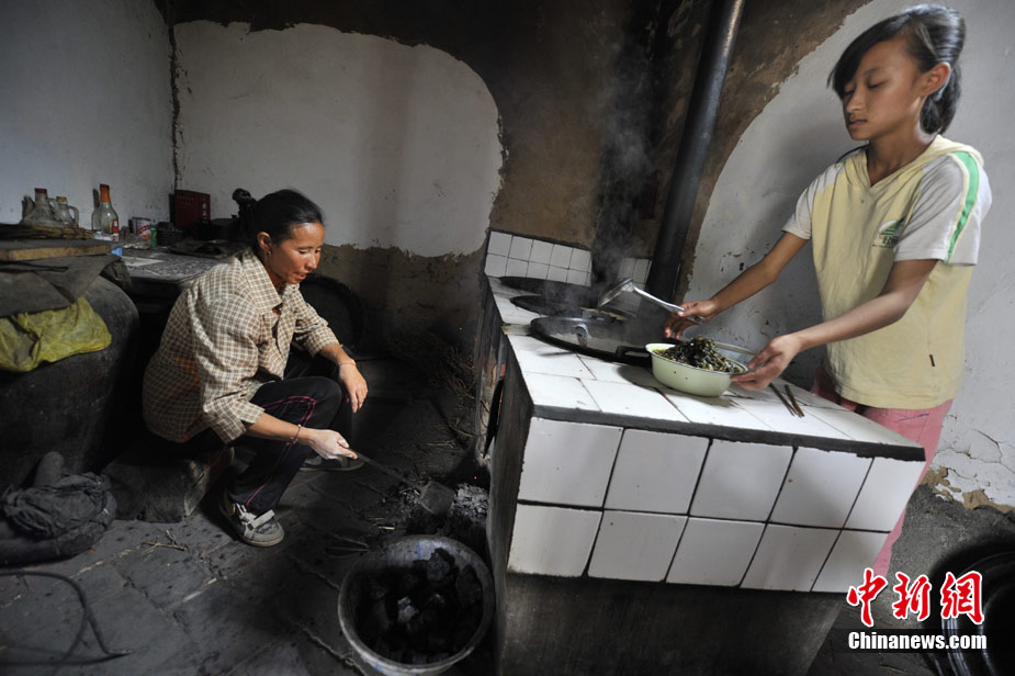 王旻桂所在鎖兒頭村,除了有輕微滑坡外,受到本次泥石流災(zāi)害的影響并不大,王旻桂家里還有存糧,在外打工的丈夫聽到災(zāi)難的消息,也趕了回來,一家人因為災(zāi)難團聚到一起!胞溩邮胀炅,在家也沒有事,過來幫幫忙!泵鎸τ浾,王旻桂并不善言辭。