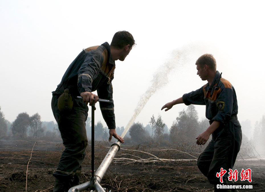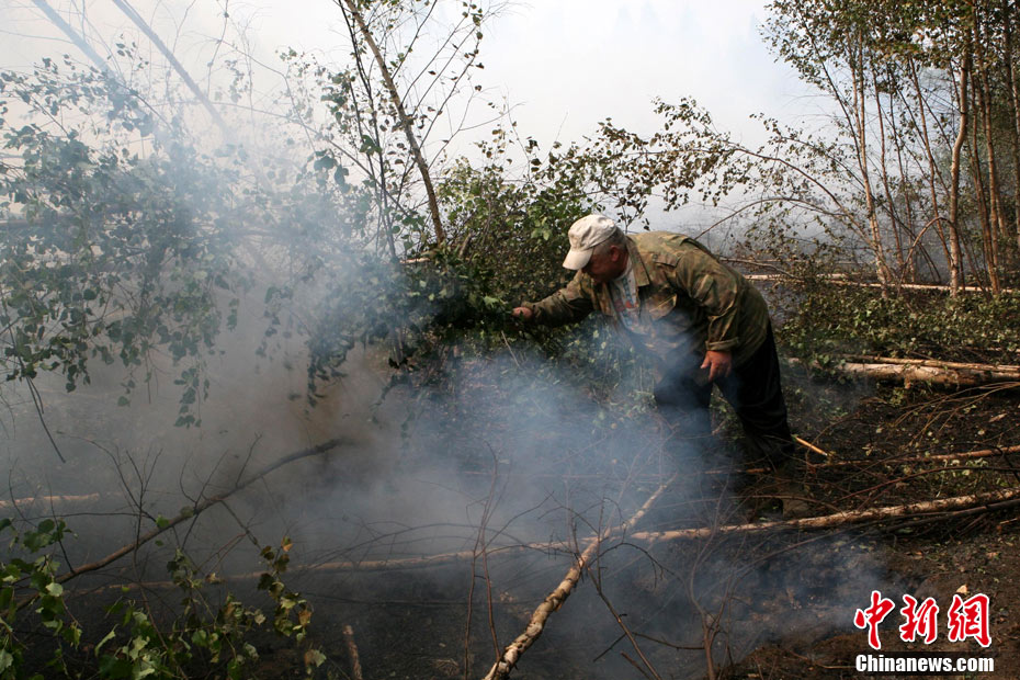 8月13日,在距莫斯科市140公里的莫斯科州沙圖拉區(qū)一村莊附近,刺鼻的煙霧繚繞中,村民用樹枝撲滅由泥炭燃燒產(chǎn)生的明火。目前該州大部分火災(zāi)被完全撲滅,但仍有29處火點(diǎn),面積達(dá)124公頃,其中12處為泥炭火災(zāi)。莫斯科周邊泥炭燃燒產(chǎn)生的濃煙被認(rèn)為是莫斯科市區(qū)煙霧的主要來源之一。中新社發(fā) 田冰 攝