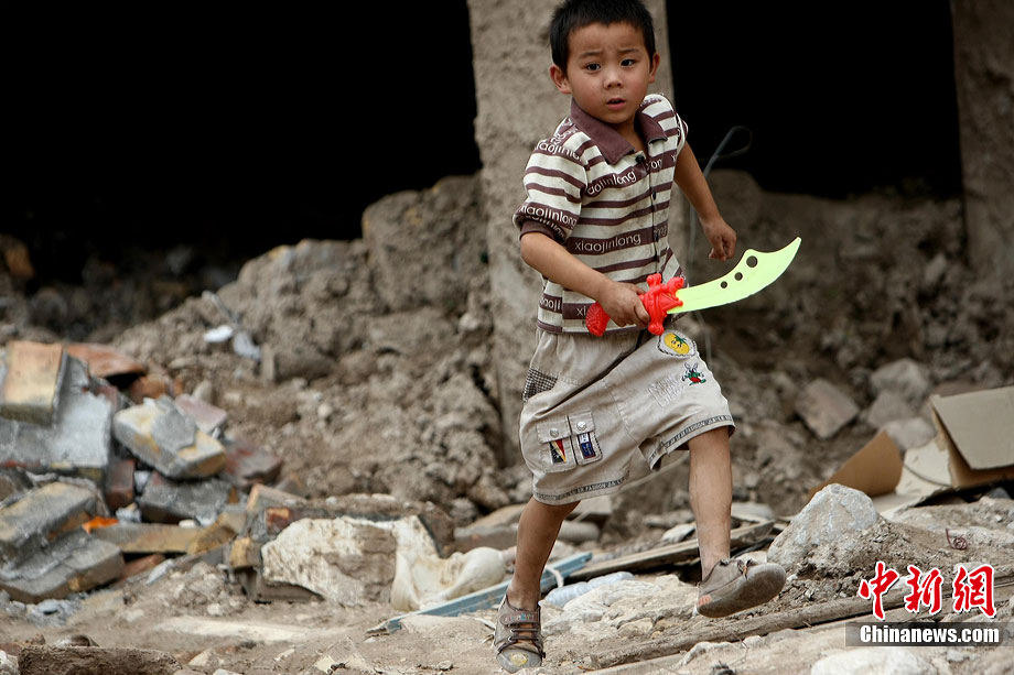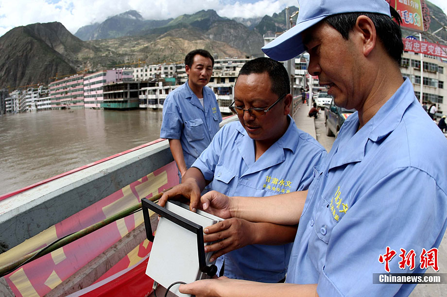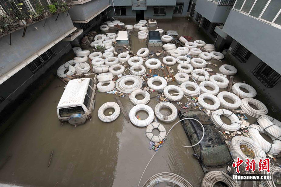 舟曲縣城因泥石流形成的白龍江堰塞湖,經(jīng)過救災(zāi)部隊官兵連續(xù)多日疏通,水位已經(jīng)明顯下降,但后續(xù)的清淤任務(wù)仍很艱巨。圖為舟曲一受災(zāi)小區(qū)內(nèi)淹沒的小轎車浮出水面。中新社記者 陳文 攝