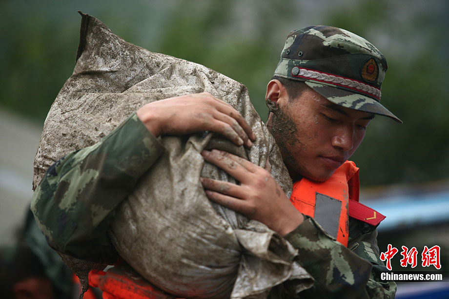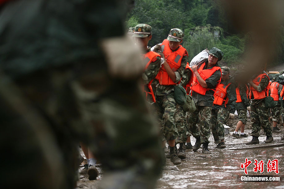 8月19日,四川眉山部分地區(qū)遭遇暴雨襲擊,丹棱縣、東坡區(qū)部分鄉(xiāng)鎮(zhèn)民房被淹,群眾被困。當(dāng)?shù)卣杆賳討?yīng)急預(yù)案,由武警、消防、民兵預(yù)備役部隊等400余人組成的抗洪搶險救援隊第一時間趕赴現(xiàn)場,緊急疏散、轉(zhuǎn)移被困群眾500余人。圖為6名被困民眾被成功轉(zhuǎn)移。中新社發(fā) 劉忠俊 攝