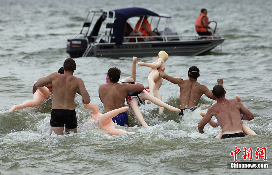 當(dāng)?shù)貢r(shí)間8月22日,一場(chǎng)別開(kāi)聲面的搞笑游泳比賽在俄羅斯西伯利亞城市新西伯利亞舉行,數(shù)十名俄羅斯壯漢懷抱“充氣娃娃”躍入河中進(jìn)行游泳比賽。不過(guò),從比賽實(shí)況來(lái)看,很顯然這些參賽者并沒(méi)有把充氣娃娃當(dāng)“伴侶”來(lái)對(duì)待,多半都當(dāng)成游泳圈,使得氣氛既搞笑卻又帶點(diǎn)詭異。