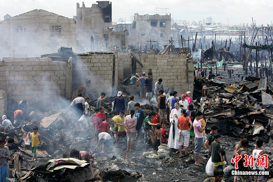 菲律賓首都發(fā)生火災(zāi) 300多間房屋被燒毀