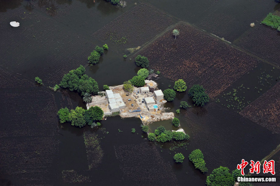 8月24日,聯(lián)合國(guó)人道事務(wù)協(xié)調(diào)廳表示,目前仍有80萬(wàn)巴基斯坦災(zāi)民被洪水圍困。圖為航拍巴基斯坦被洪水淹沒(méi)的羅錢(qián)地區(qū)。
