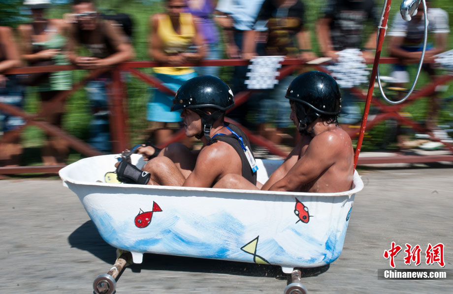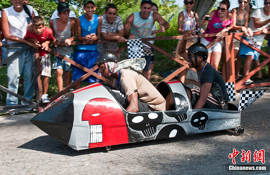 當(dāng)?shù)貢r間8月27日,古巴首都哈瓦那舉行了首屆無動力自制小車大賽。82名參賽選手駕駛著41輛自制小車參賽。