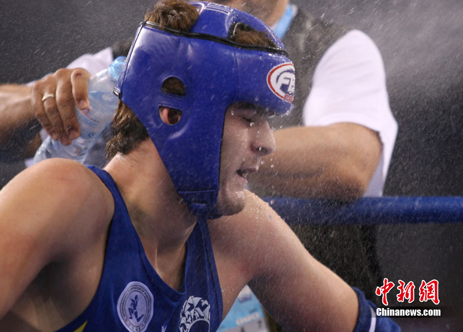 8月31日,2010年北京首屆世界武搏運(yùn)動(dòng)會(huì)泰拳比賽在北京奧體中心體育館進(jìn)行了11個(gè)級(jí)別半決賽的較量,包括8個(gè)級(jí)別的男子半決賽和3個(gè)級(jí)別的女子半決賽。 中新社發(fā) 盛佳鵬 攝