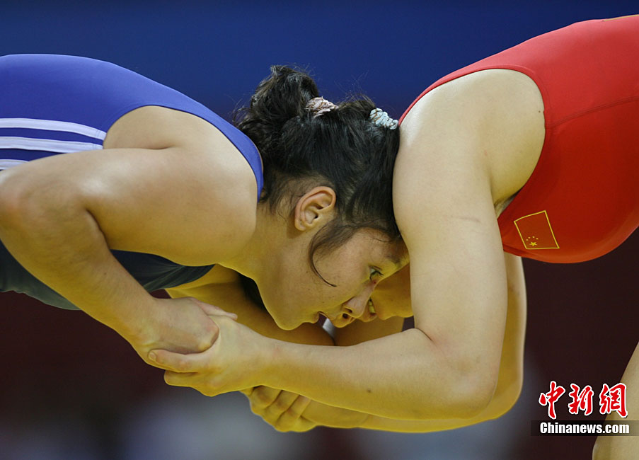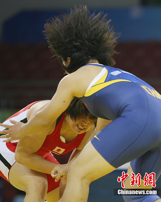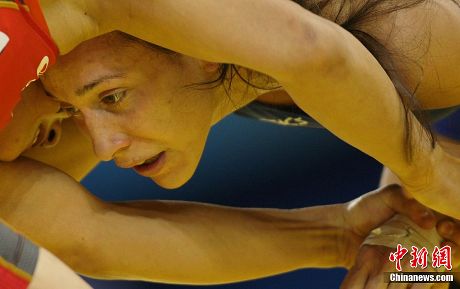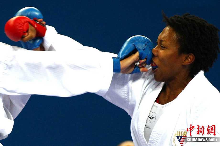 9月1日,2010年北京首屆世界武搏運動會空手道項目在北京科技大學體育館結束了全部爭奪。圖為在女子-68公斤級決賽中,來自美國的墨菲(Murphy)(圖)被法國選手泛亞特(Fanjat)擊中面部,最終不敵對手屈居第二。中新社記者 富田 攝