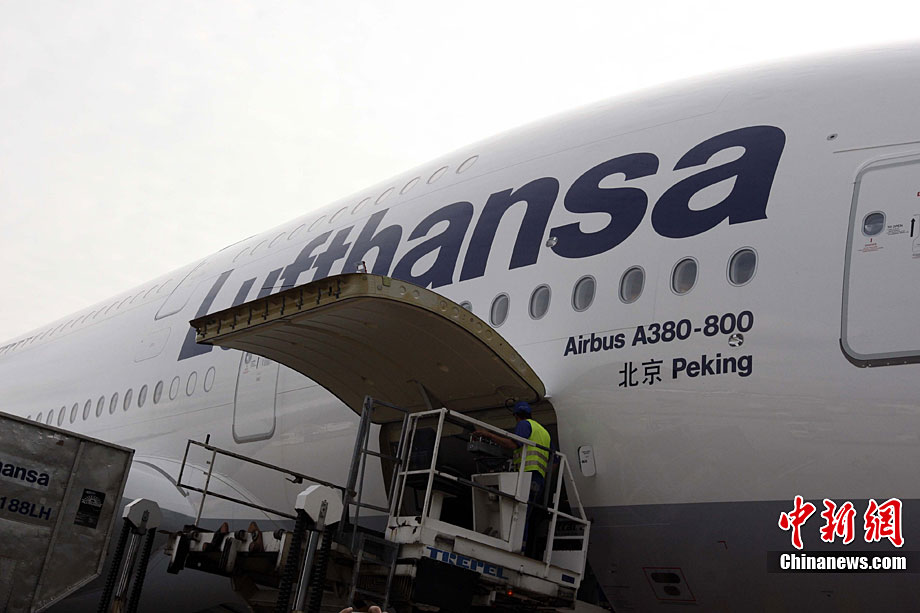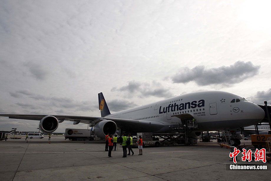 九月二日,德國(guó)漢莎航空公司正式開(kāi)通A380中國(guó)北京至漢莎德國(guó)主樞紐法蘭克福間航線。漢莎航空公司是首家在通往中國(guó)的長(zhǎng)途國(guó)際航線上采用被譽(yù)為是世界上體積最大、最具經(jīng)濟(jì)效益的A380空中客車的歐洲航空公司。為了紀(jì)念這一歷史性的時(shí)刻以及漢莎航空與中國(guó)深厚的友誼,這架A380被命名為“北京號(hào)”,而這也是漢莎航空首次以非德國(guó)城市命名旗下飛機(jī)。中新社記者 任海霞 攝