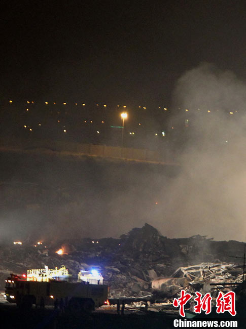阿拉伯聯(lián)合酋長國民航總局3日發(fā)表聲明說,美國聯(lián)合包裹服務(wù)公司(UPS)一架波音747-400貨機(jī)當(dāng)天晚上在迪拜墜毀,機(jī)上兩名飛行員喪生。圖為墜機(jī)現(xiàn)場。