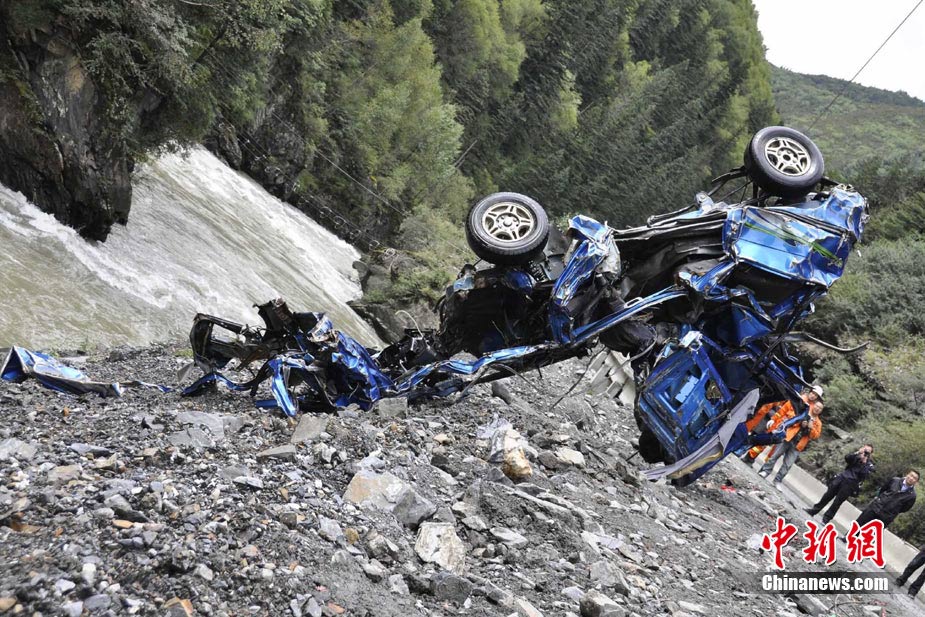 9月5日,四川馬爾康梭磨鄉(xiāng)發(fā)生一起車禍,導(dǎo)致兩輛車墜入河中,目前,其中的一輛面包車已被打撈上岸,車內(nèi)有3人喪生,另一輛皮卡車還在搜尋之中,事故原因正在進一步調(diào)查中。圖為面包車被打撈上岸。中新社發(fā) 沈消軒 攝