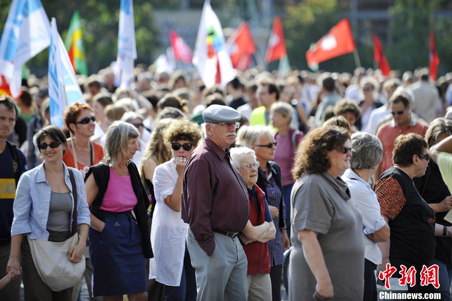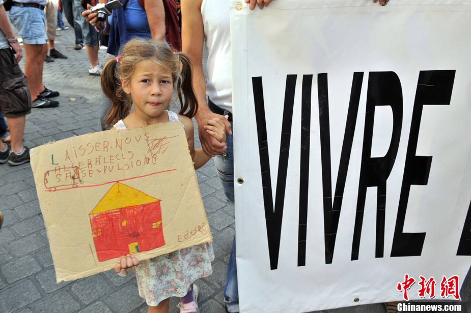 法國全國各地4日有數(shù)以萬計的群眾上街示威,抗議政府最近采取新政策,強行驅(qū)逐吉卜賽人出境。歐洲其它城市包括貝爾格萊德和羅馬,也有群眾游行聲援吉卜賽人。圖為在法國南特,民眾示威抗議政府強行驅(qū)逐吉普賽人。