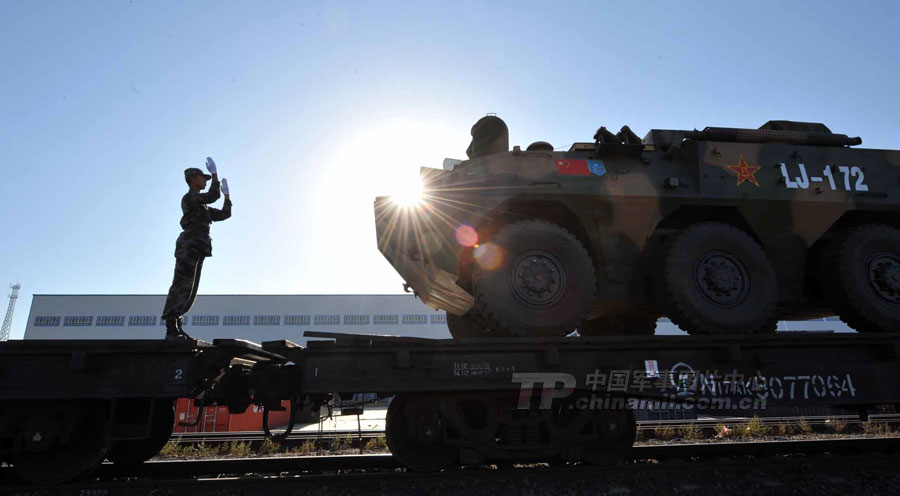 隨著軍列一聲長(zhǎng)鳴,中方陸軍戰(zhàn)斗群第一梯隊(duì)9月5日晚于新疆阿拉山口駛出國(guó)門,進(jìn)入哈薩克斯坦境內(nèi),參加“和平使命-2010”聯(lián)合軍演。這是中國(guó)軍隊(duì)第二次跨境遠(yuǎn)程投送兵力參加上合聯(lián)演。