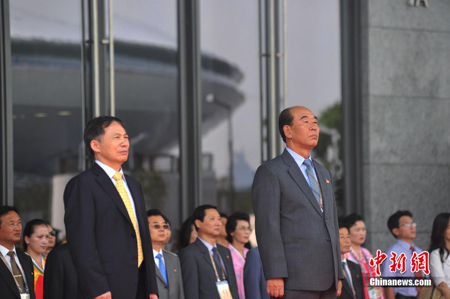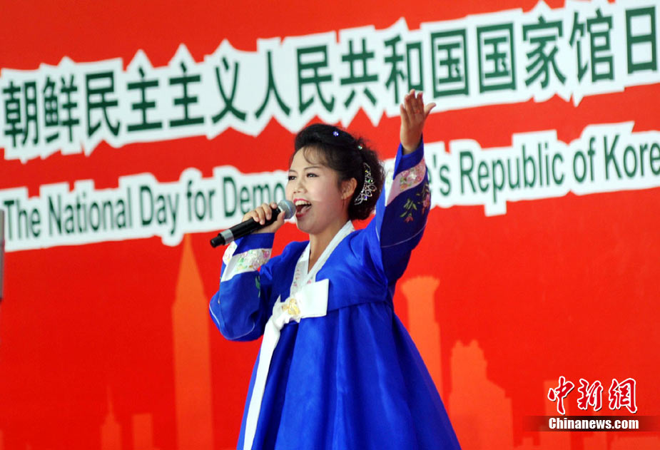 9月6日,上海世博會迎來朝鮮國家館日。平壤國家藝術(shù)團的演員用中文演唱《紅旗飄飄》。中新社記者 蔣雪林 攝