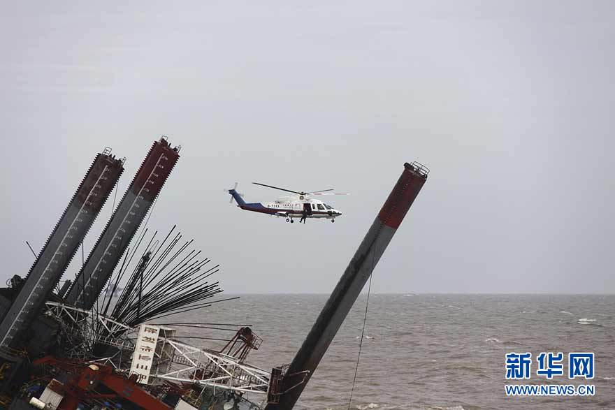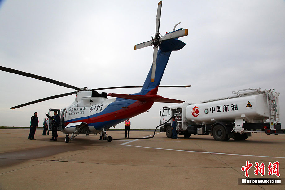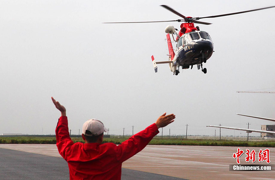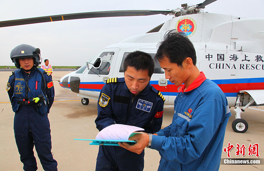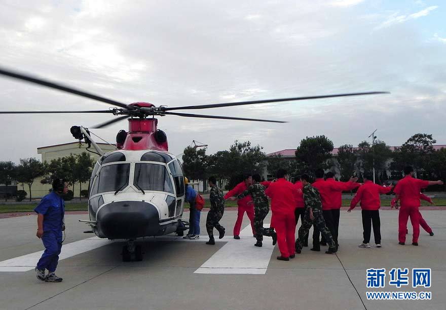 9月8日,交通運(yùn)輸部北海第一救助飛行隊(duì)救援人員駕駛直升機(jī)在傾斜的山東東營勝利油田3號鉆井平臺事故現(xiàn)場搜救。 9月7日23時,山東東營勝利油田位于渤海的作業(yè)3號鉆井平臺,因傾斜遇險,平臺上4人落水,32人被困平臺。中國海上搜救中心連夜救助,目前已有34人獲救,救援人員正在全力搜救2名失蹤人員。圖片來源:新華網(wǎng)