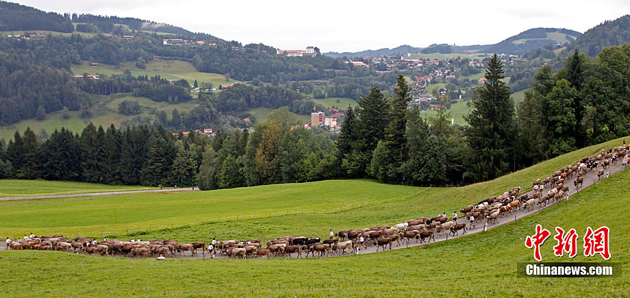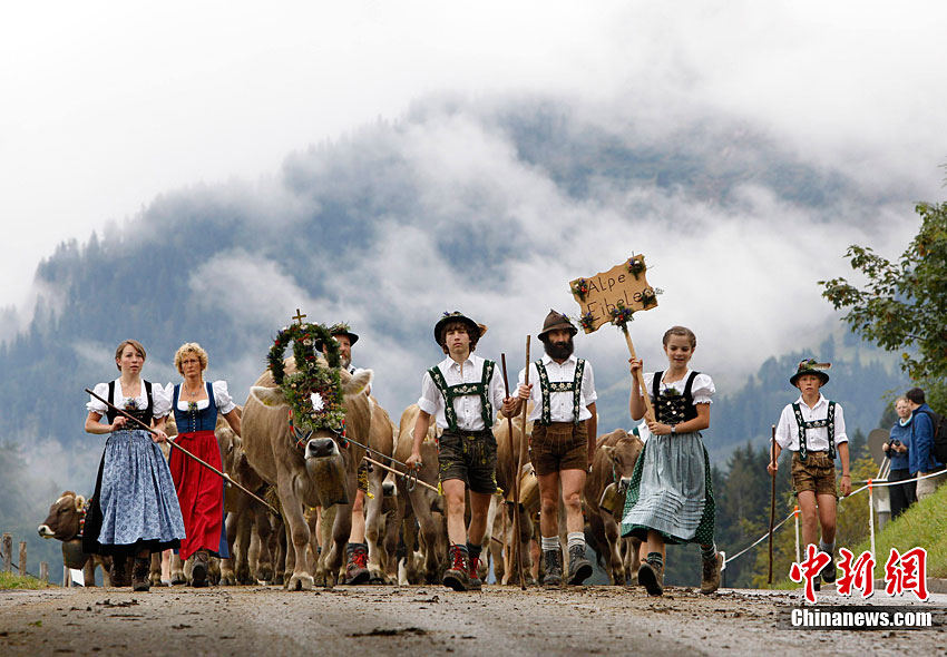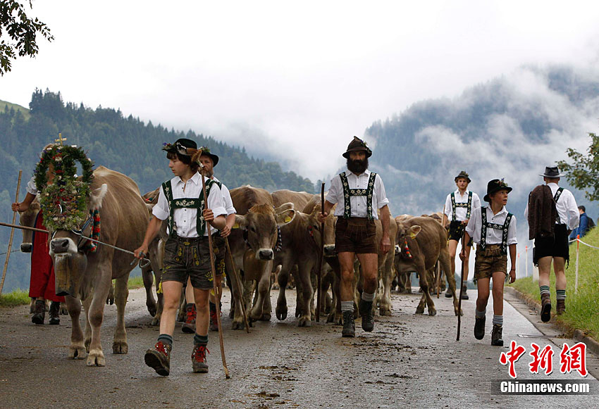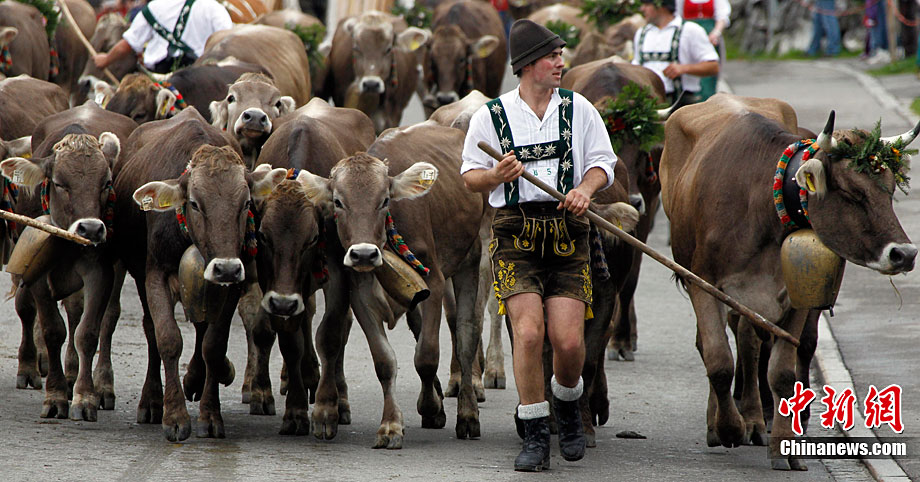 當(dāng)?shù)貢r(shí)間9月10日,德國(guó)奧博斯托芬舉行傳統(tǒng)的趕牛儀式。在山上待了一個(gè)夏天后,超過(guò)1200頭牛回到山谷,當(dāng)?shù)厝藭?huì)把一個(gè)牛頭進(jìn)行裝飾,以此紀(jì)念牛群安全歸來(lái)。