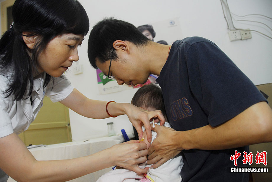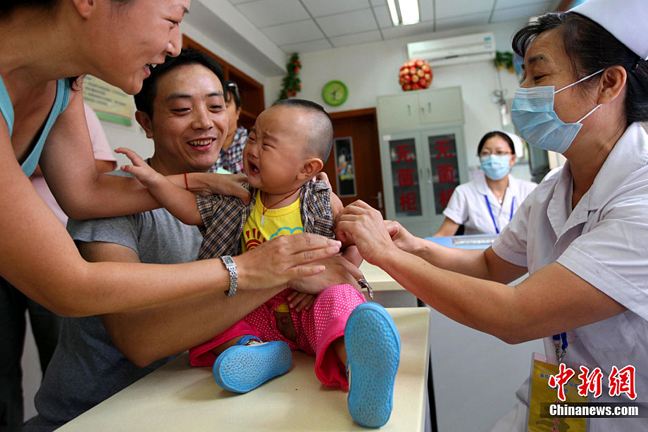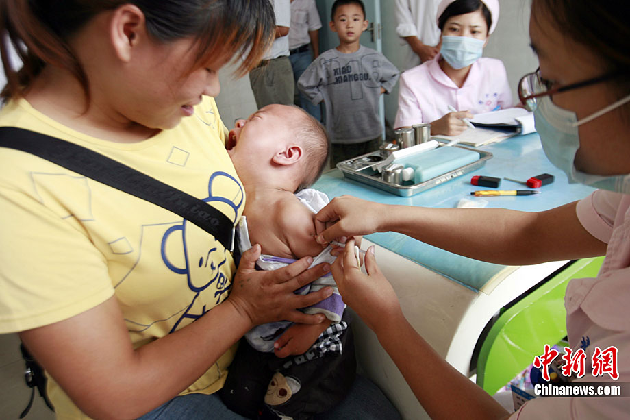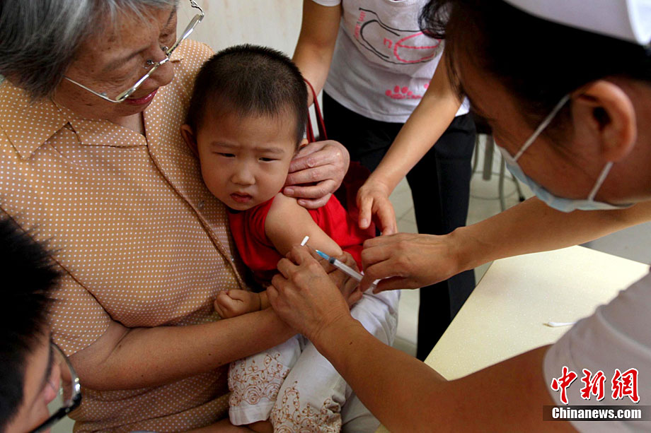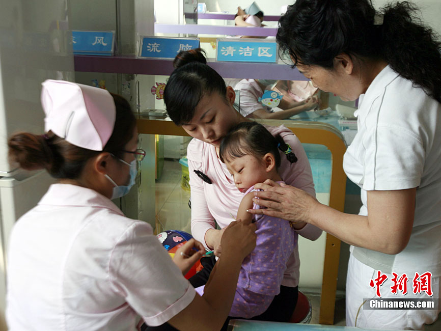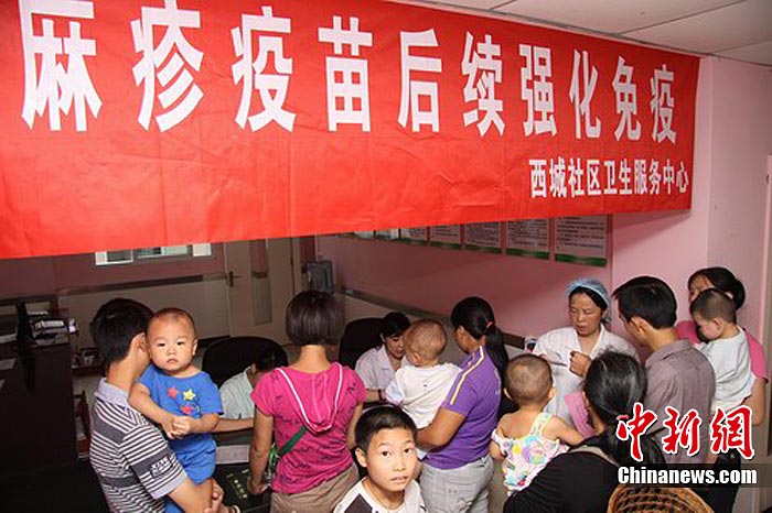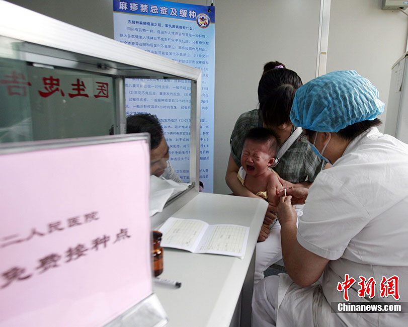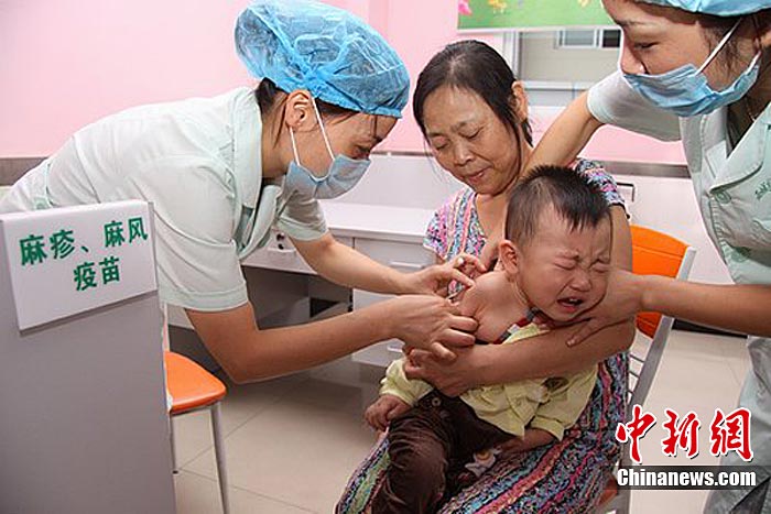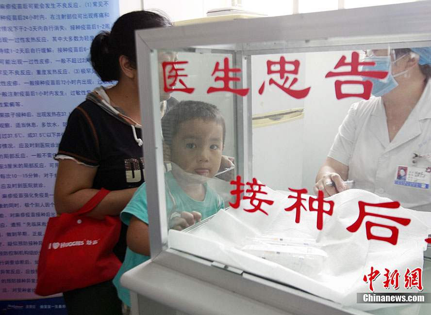 9月11日,中國(guó)史上最大規(guī)模的“麻疹強(qiáng)化免疫”啟動(dòng),河南省鄭州市第二人民醫(yī)院疫苗接種醫(yī)生展示由中國(guó)企業(yè)自行生產(chǎn)的麻疹疫苗。據(jù)中國(guó)疾控中心副主任楊維介紹,目前中國(guó)使用的麻疹疫苗,全部都是由中國(guó)企業(yè)自己來(lái)生產(chǎn),據(jù)初步統(tǒng)計(jì),將近一億兒童接種麻疹疫苗。中新社記者 王中舉 攝