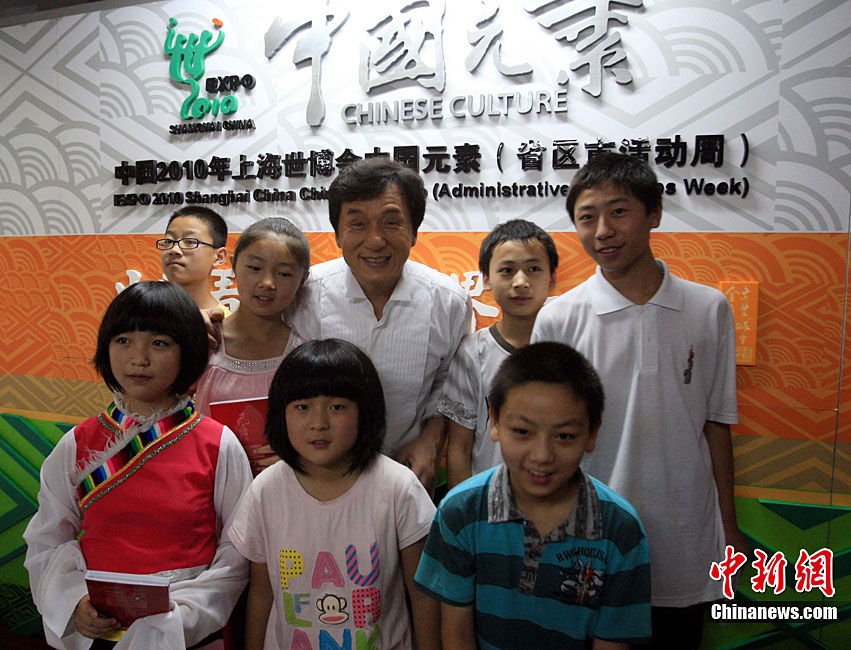 9月11日,上海世博會中國元素迎來甘肅省活動周,上海世博會形象大使、國際影星成龍現(xiàn)身開幕儀式,并獻唱一曲《風雨同舟》問候舟曲。中新社記者 潘索菲 攝
