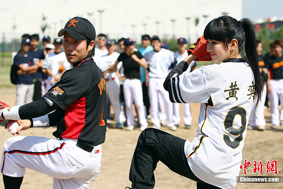 9月12日,全民棒壘聯(lián)盟PBSL秋季聯(lián)賽在北京開幕。黃奕作為開球嘉賓出席。在中日韓精英隊(duì)隊(duì)員們的指導(dǎo)下,黃奕現(xiàn)場打起棒球有模有樣。2010全民棒壘聯(lián)盟PBSL得到了在京的廣大中、日、韓、美等國棒壘球愛好者的踴躍支持,秋季聯(lián)賽將有超過30支泛北京區(qū)域(北京、河北以及天津)球隊(duì)參加。中新社記者 李學(xué)仕 攝