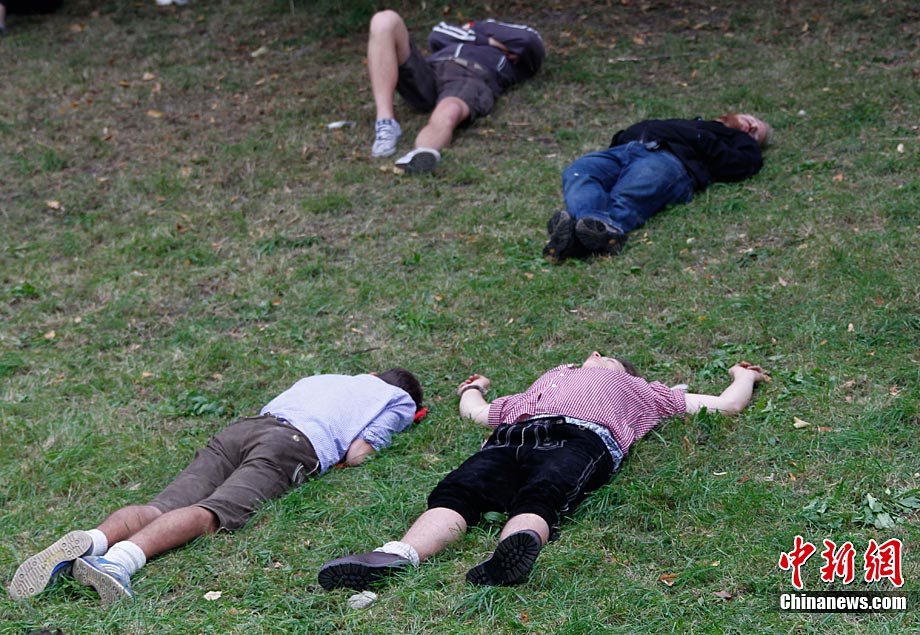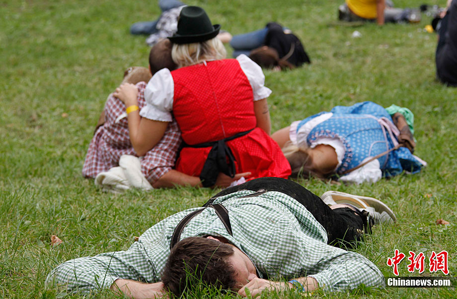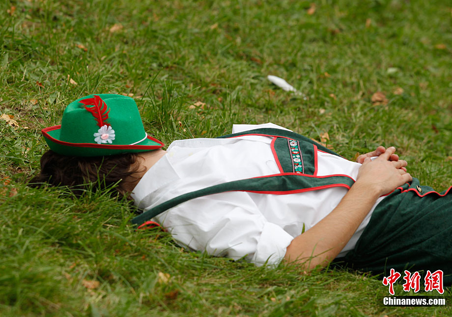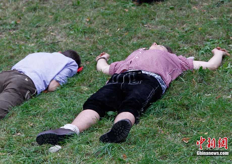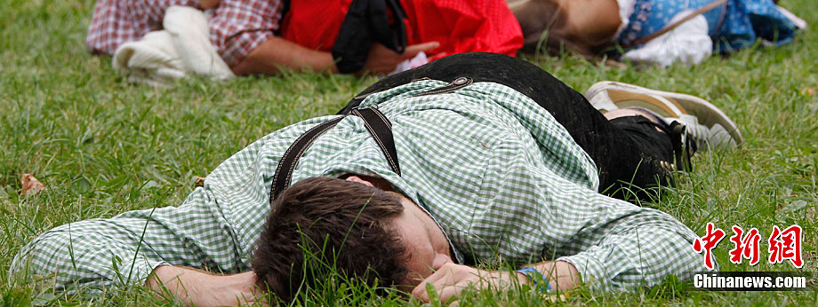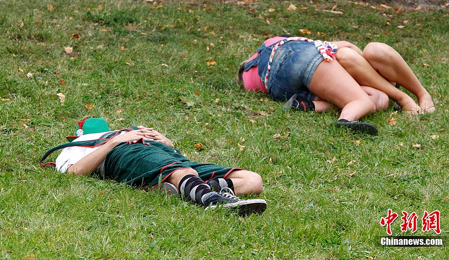 慕尼黑啤酒節(jié)200周年 游客醉倒酣睡