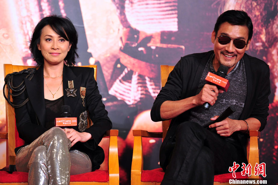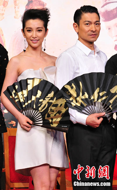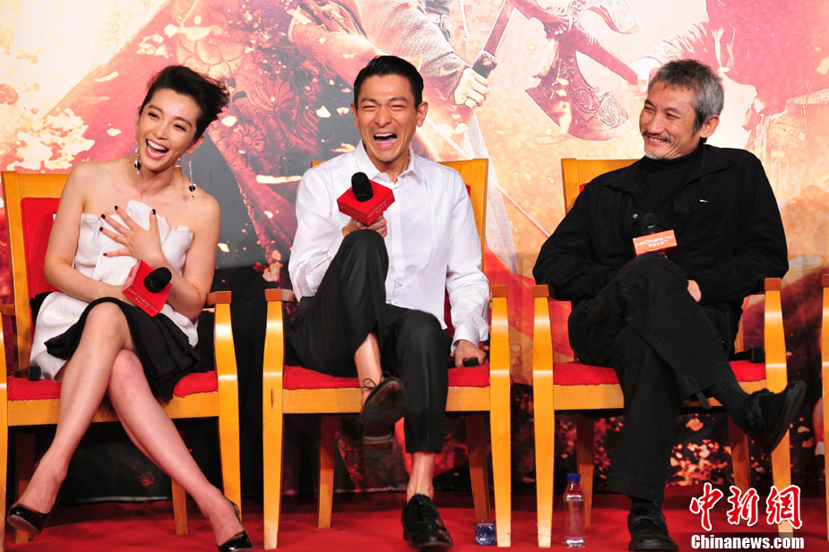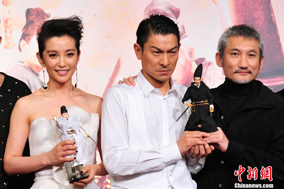 9月19日,由徐克導(dǎo)演、陳國富監(jiān)制、洪金寶擔(dān)任武術(shù)指導(dǎo)的華誼兄弟大片革命之作《狄仁杰之通天帝國》在京舉行亞洲首映發(fā)布會。導(dǎo)演徐克攜主演劉德華、李冰冰、劉嘉玲、梁家輝、鄧超全陣容亮相,這也是五大主演首次同臺宣傳。主演狄仁杰的劉德華在現(xiàn)場大開玩笑,多次引爆笑彈。該片將于9月29日上映。圖為劉德華扮起觀音姿勢。中新社記者 李學(xué)仕 攝